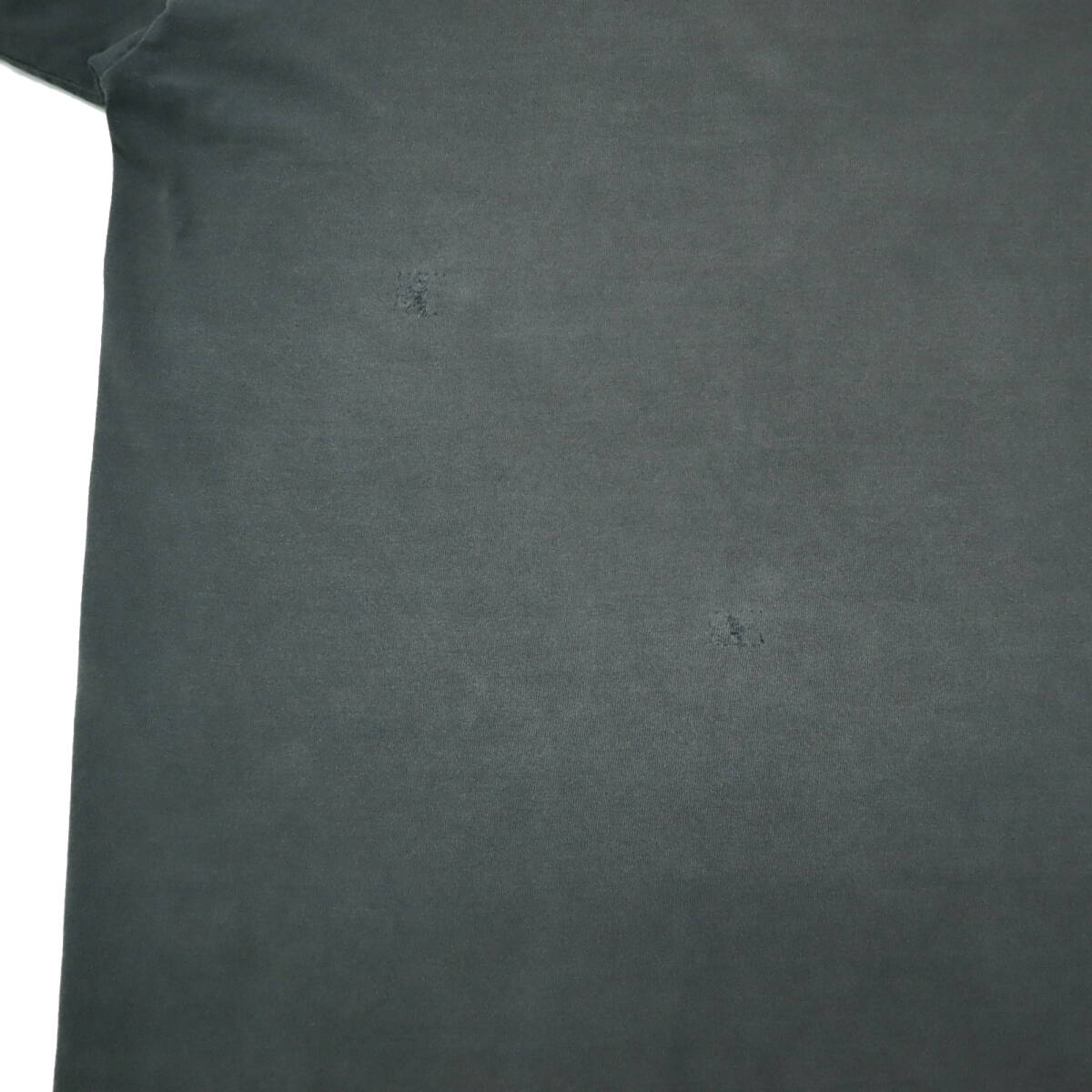 【状態】 タグ無し、プリントにヒビ、両袖先に小さなほつれ、肩の縫い目に細かなほつれ、袖先の縫い目に細かなステッチ抜け、首リブ下に小さな色落ち、裾付近にペンキ跡や汚れ、裾に歪み、裾の縫い目のステッチ抜けを補修してあります。バックに1〜2㎝程の破れを補修してあります。元々、当て布が付いていましたが、剥がれかけていましたので、新たに当て布を付けて手縫いで補修してあります。その為、内側から見ると、元の当て布が付いていた跡が薄らと残っています。全体的に生地に色落ちがございますが、補修も入り、生地自体も強度がございますので、まだまだご使用頂ける状態です。販売前に洗濯済みです。