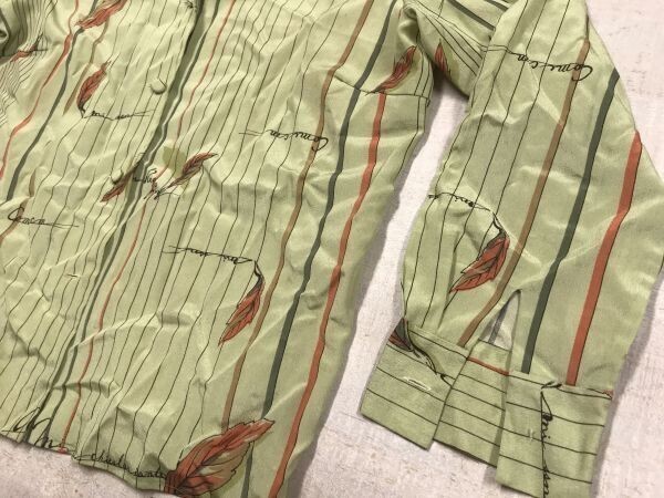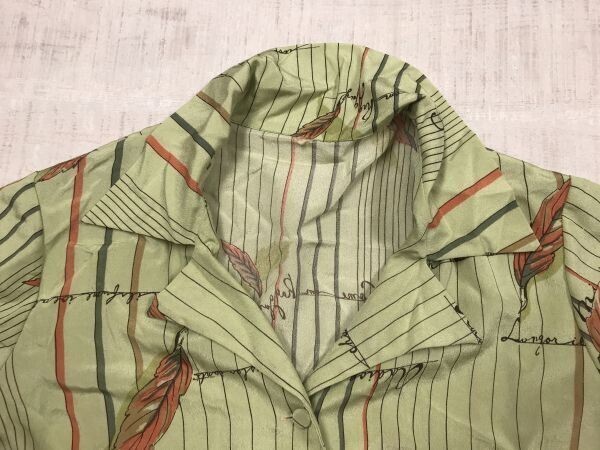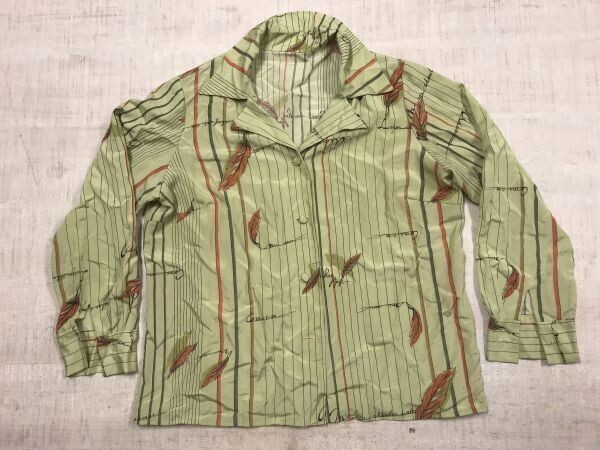 OLD オールド 昭和レトロ モダン ミセス ストライプ 羽根 くるみボタン ブラウス 長袖 オープンカラー シャツ レディース カーキ です。