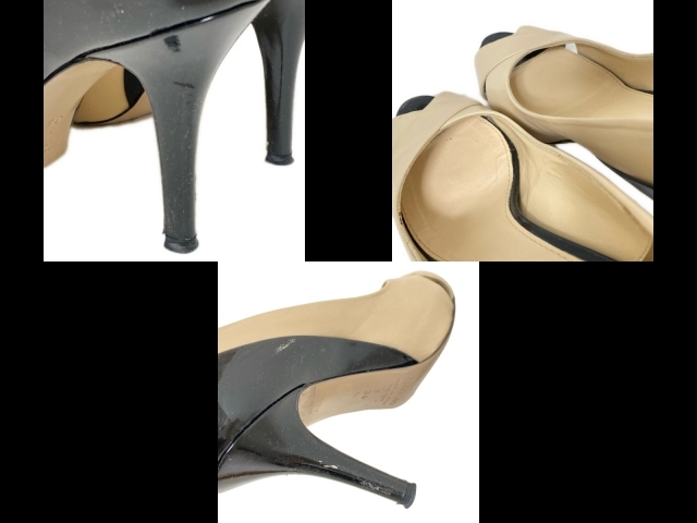 マックスマーラ Max Mara パンプス 36 - レザー ベージュ×黒 レディース オープントゥ 靴