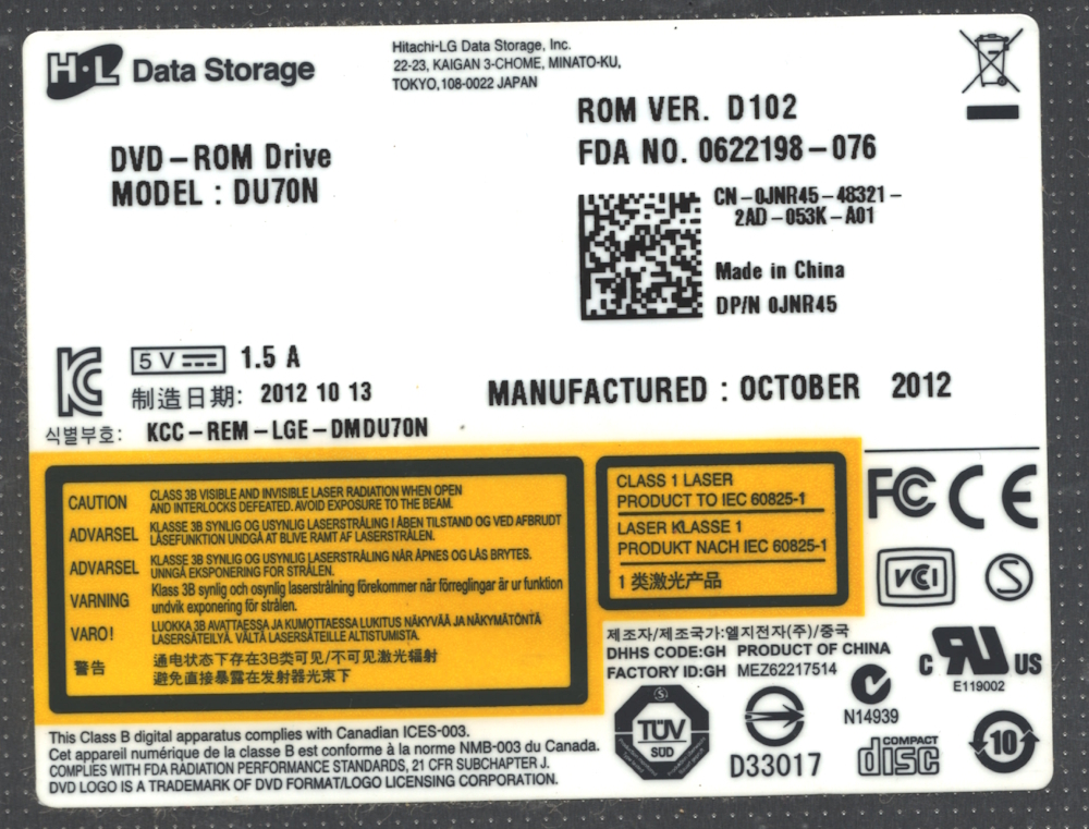 Hitachi-LG Data Storage DVD-ROM DU70N 動作確認済み