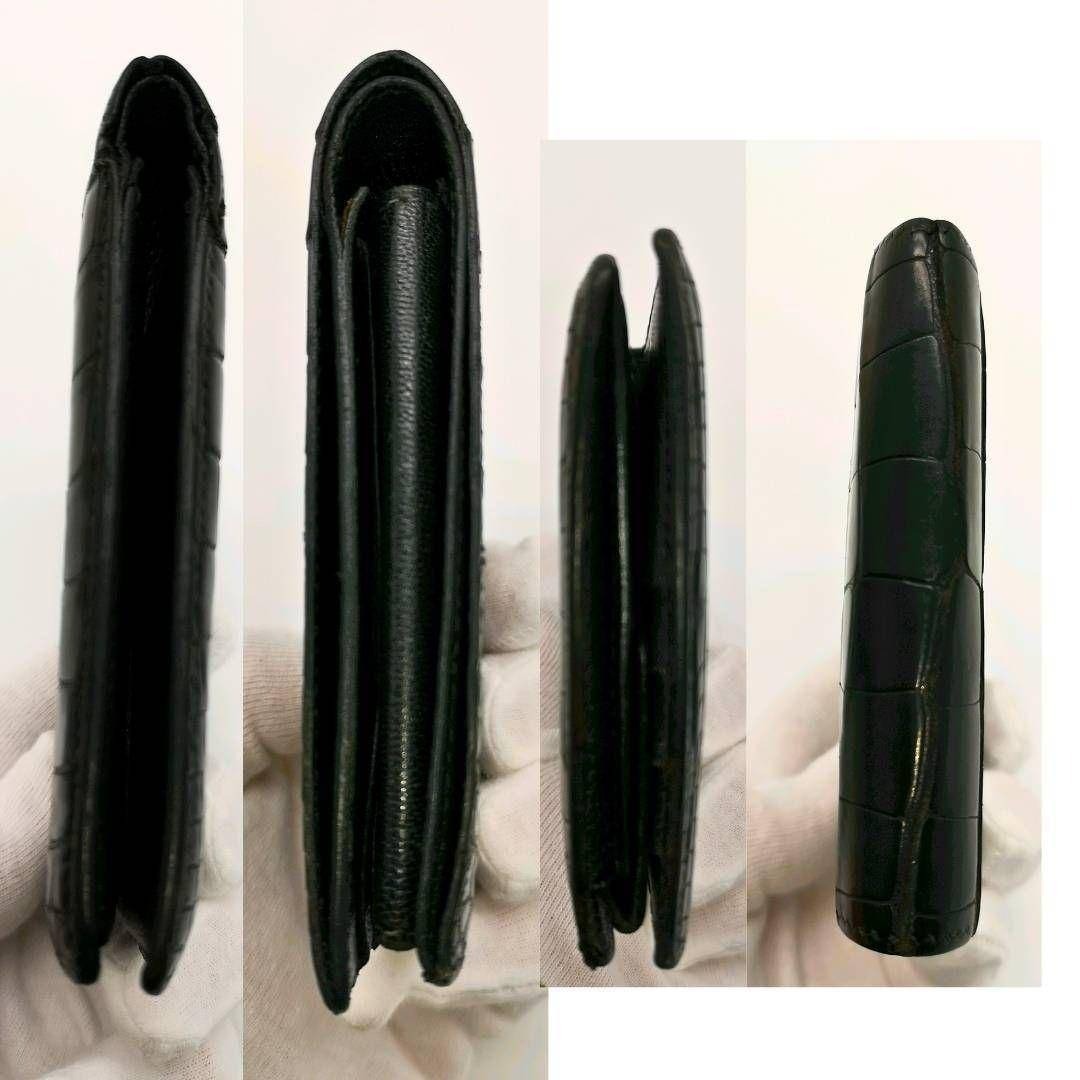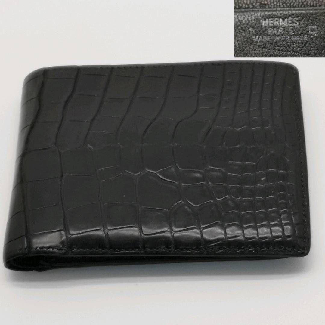 極美品 エルメス MC2 タレス アリゲーター 二つ折り 財布 黒 フランス製 HERMES クロコダイル レザー ウォレット ブラック 小銭入れ ワニ 鰐皮