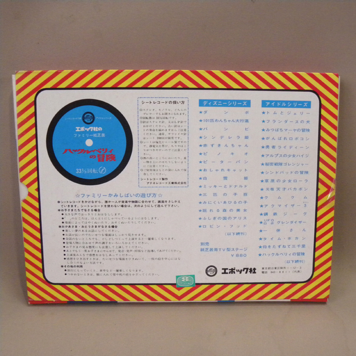 1970年代当時物、エポック社「ファミリー紙芝居 ハックルベリィの冒険」未使用新品です。