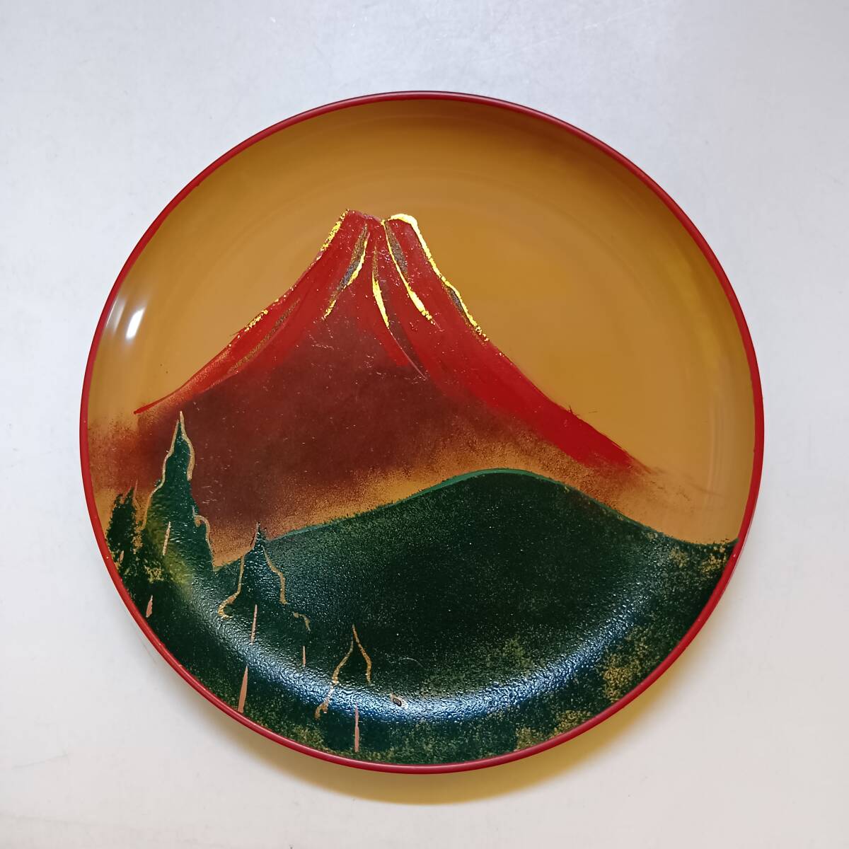 【B-4】三木表悦 うるし絵 富士盆 共箱付 茶道具 | |||