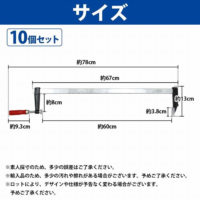 10本セット F型 クランプ 80mm×600mm 最大開口600mm 木材 木工 工作 溶接 固定 DIY 作業 工具 万力 Fクランプ L型 C型 10個