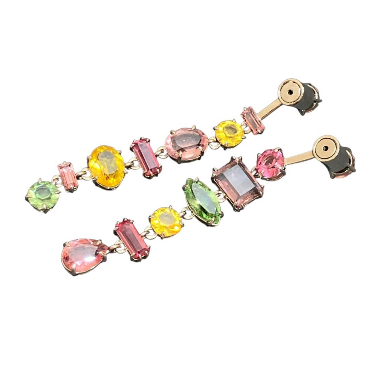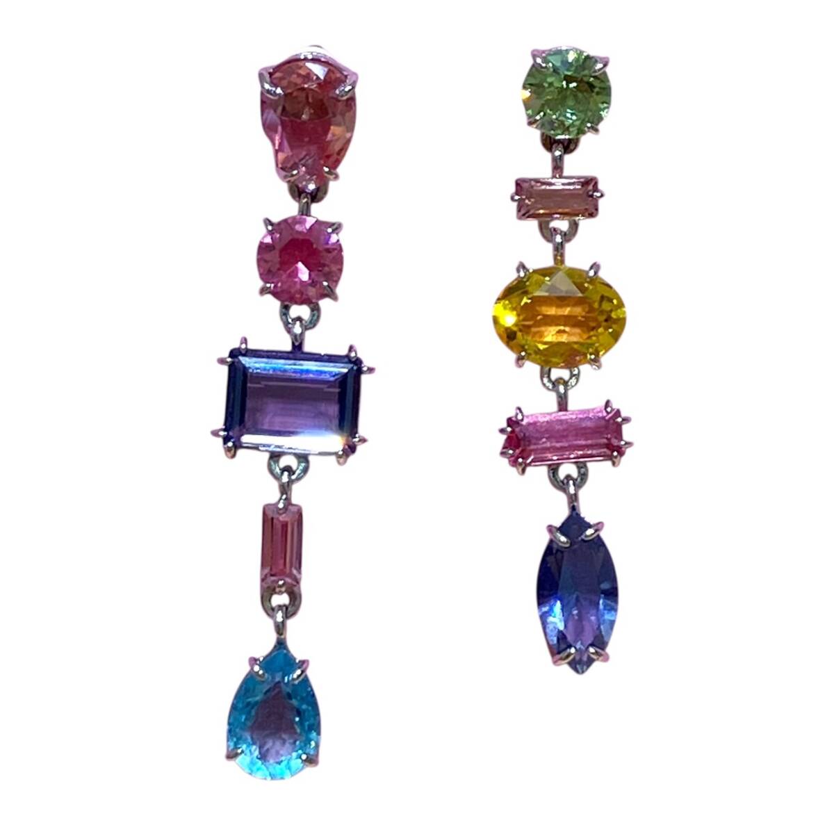 | スワロフスキー SWAROVSKI Gema ドロップ マルチカラー ストーン ロング ピアス 予備キャッチ4つ付き |