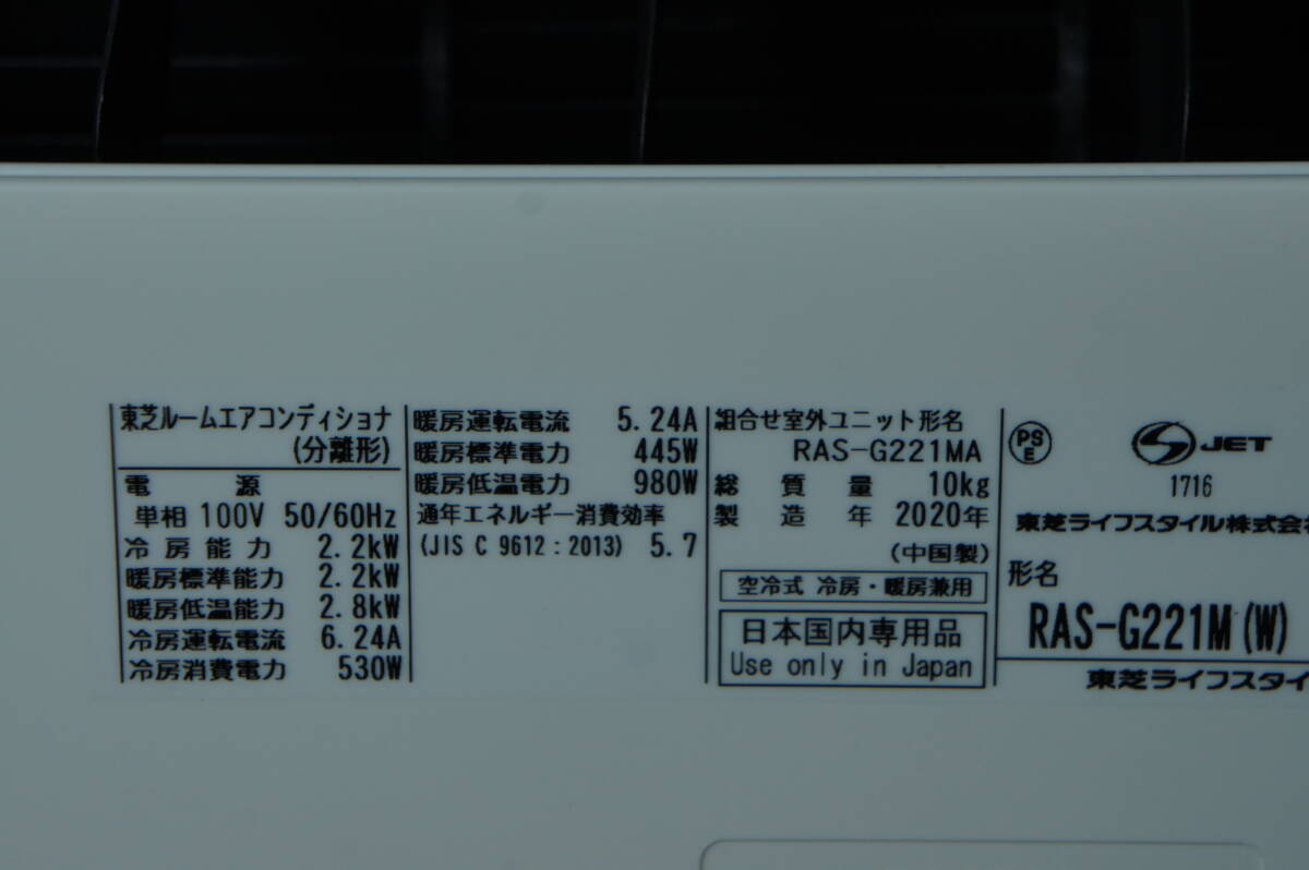 | 【状態】 ・ポンプダウン済みです。 ・室内機、室外機共に目立つキズ、凹み、汚れもなくきれいな状態です(個人主観)。 ・簡単清掃はおこなっておりますが、取れない汚れがありますので写真でご確認下さい。 ・状態に見落としがあるかもしれませんのでご了承下さい。 ・フィルターも汚れ破れもなくきれいな状態です(個人主観)。 ※間違いなくポンプダウン済みですが、万が一補充が必要な場合があっても補償は致しません。 【メーカー】 ・東芝 【年式】 ・2020年製 【型式】 ・室内機 RAS-G221M(W) ・室外機 RAS-G221MA 【外形寸法】 ※素人寸法の為若干の誤差があると思います。 ・室内機 約H230mm W780mm D250mm 最大H310mm W1000mm ・室外機 約H600mm W680mm D400mm 最大W740mm 【附属品】 ・リモコン ※付属品に記載漏れがあっても画像に写っている物が全てです。 | |||