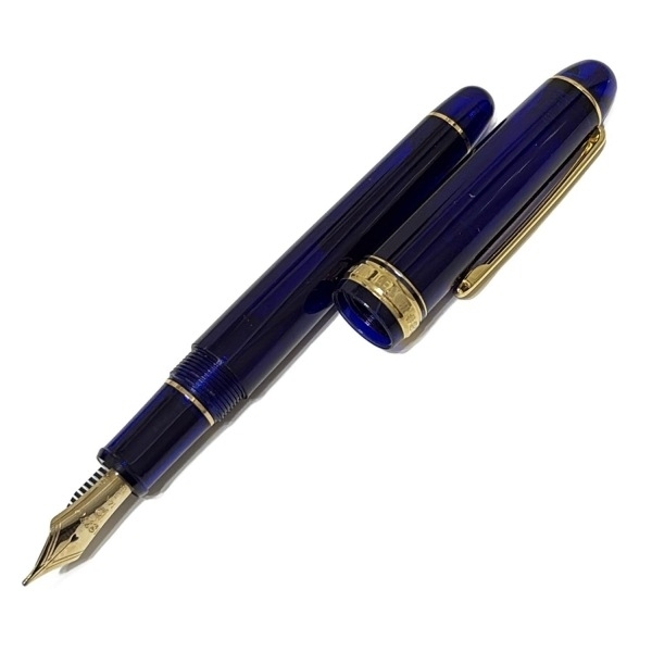プラチナ PLATINUM 万年筆 シャルトルブルー - シャトルブルー(ネイビー×ゴールド) ペン先14/インクなし/スケルトン 美品 ペン