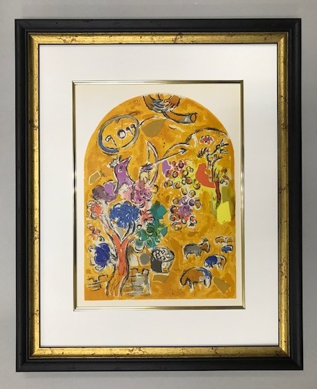 製作年=【 1962年 】/タイトル=【 TRIBE OF JOSEPH/THE JERUSALEM WINDOWS  】/版元=【 MOURLOT/CH.SORLIER 】/イメージサイズ=【 310X235 】/新品オーダー高級金箔額装(虫食い装飾ブラック)サイズ=【 480X405/面金マット仕様  】/状態=大変良好【  ミントコンディション  】/送料=無料【  ヤフネコ宅急便  】