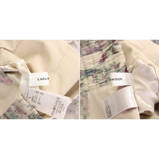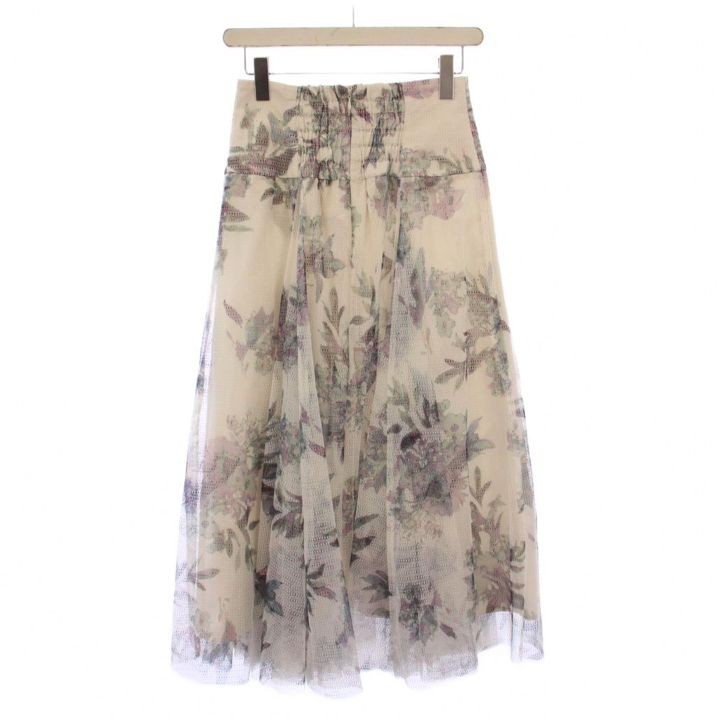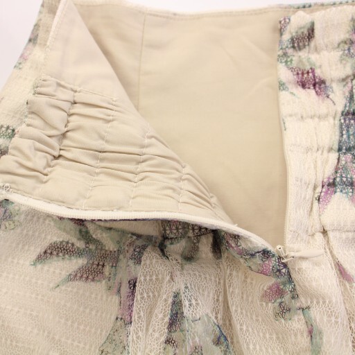 ラグナムーン LagunaMoon レースチュールフラワースカート フレア ミモレ ロング 花柄 総柄 S アイボリー マルチカラー 032350800901