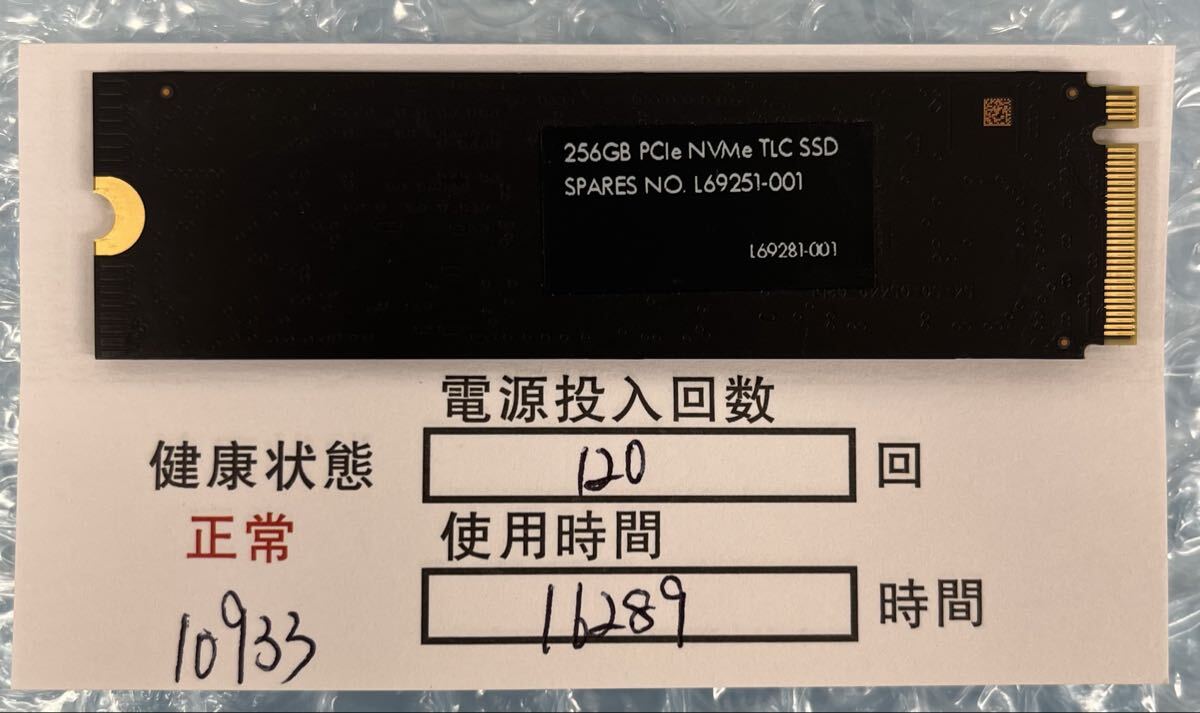 10933/中古品/SSD/NVME/2280/WD /256GB/動作確認済み/返品返金対応/納品書発行可(商品説明文ご確認下さい)