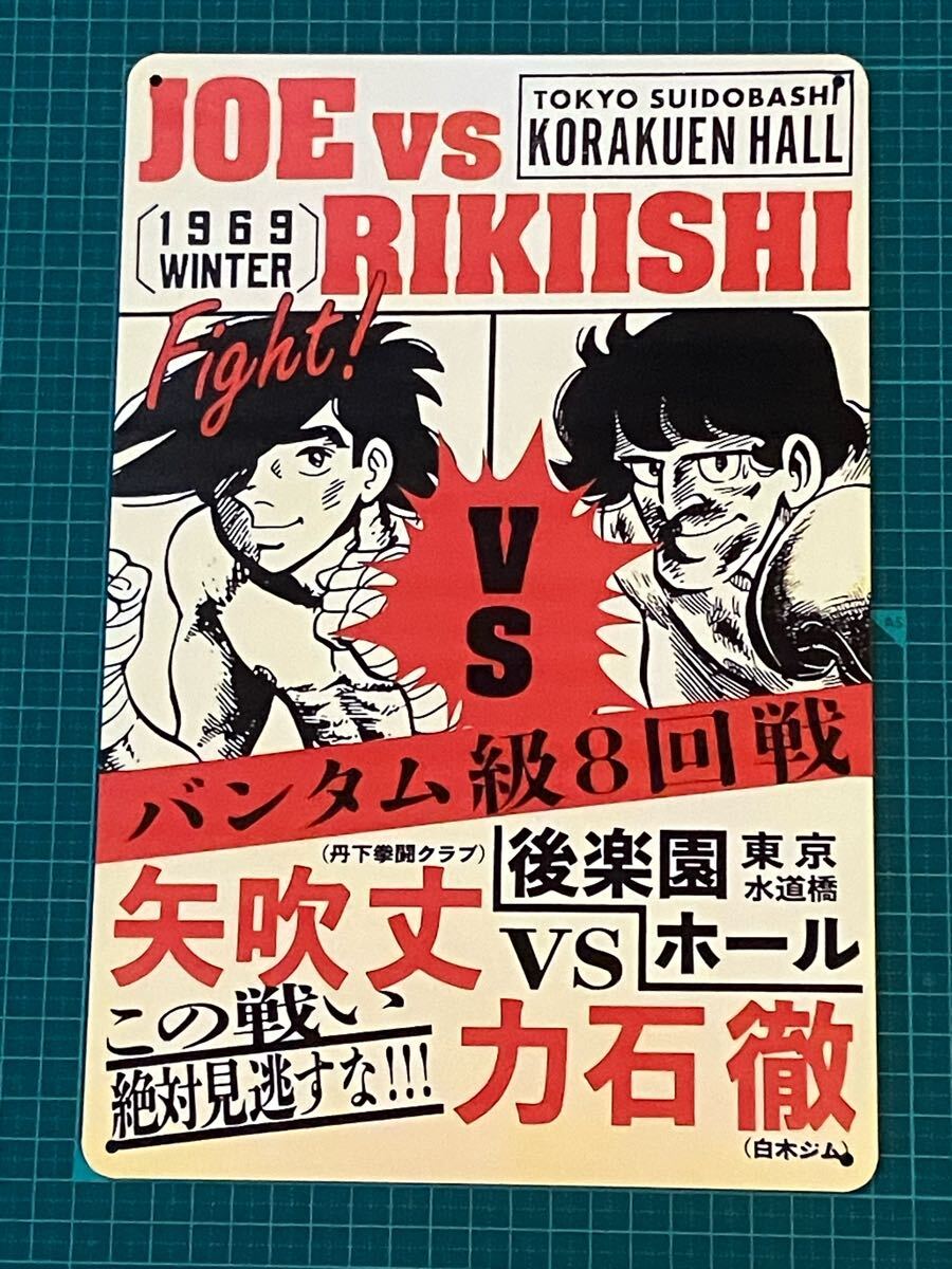 AI0B- 超希少ブリキ看板】1969年冬 ボクシング 矢吹丈 vs 力石徹 バンタム級8回戦 部屋や仕事場、自分だけの秘密基地の壁にいかがですか