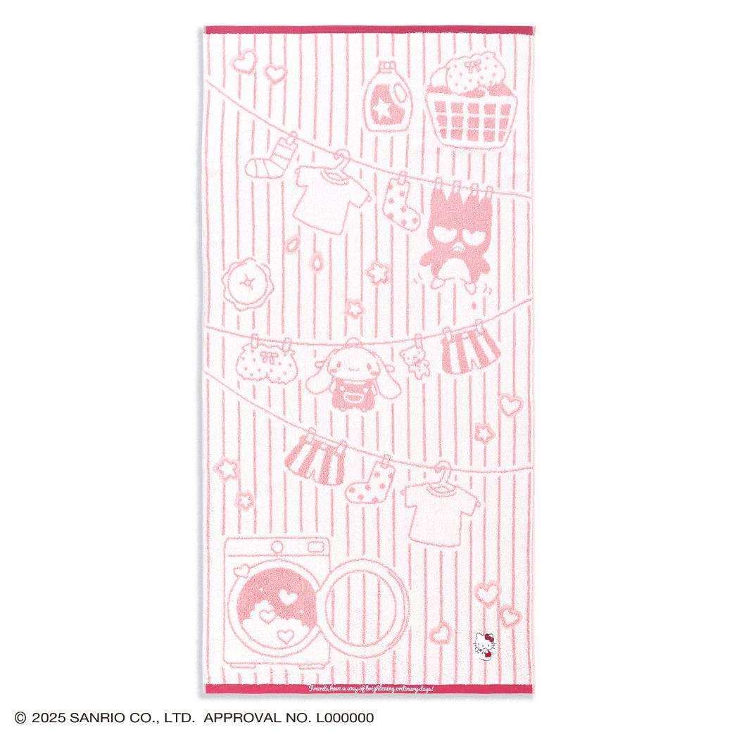 お洗濯モチーフがデザインされたキュートなタオル ふんわり優しいカラーを基調に、お洗濯モチーフがデザインされたキュートなタオルです。洗濯機や干している洋服、バスケットなどのイラストが散りばめられ、日常のささやかなシーンにほっこり感をプラス。タオルの右下にはそれぞれワンポイントでキャラクターの刺繍されており、見た目にもかわいらしく仕上がっています。ふわふわした無撚糸で触りごごちの良いボリュームがあり、贈り物にも大変喜ばれます。サイズ:約600x1200mm素材:綿100%原産国:ベトナム(タオル美術館所有工場製)メーカー型番:28-2063300