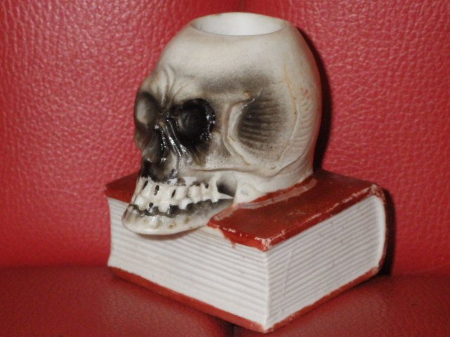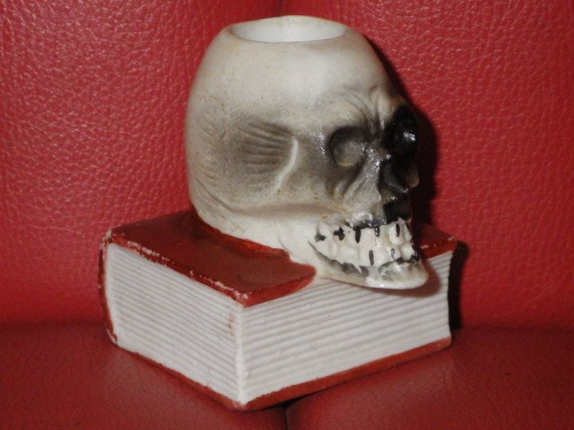 セラミック素材のスカルオンブック・マッチ(キャンドル)ホルダーです♪