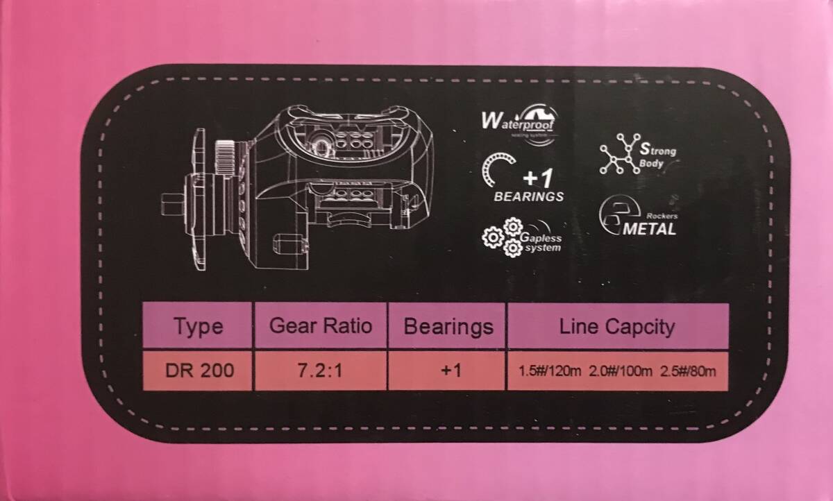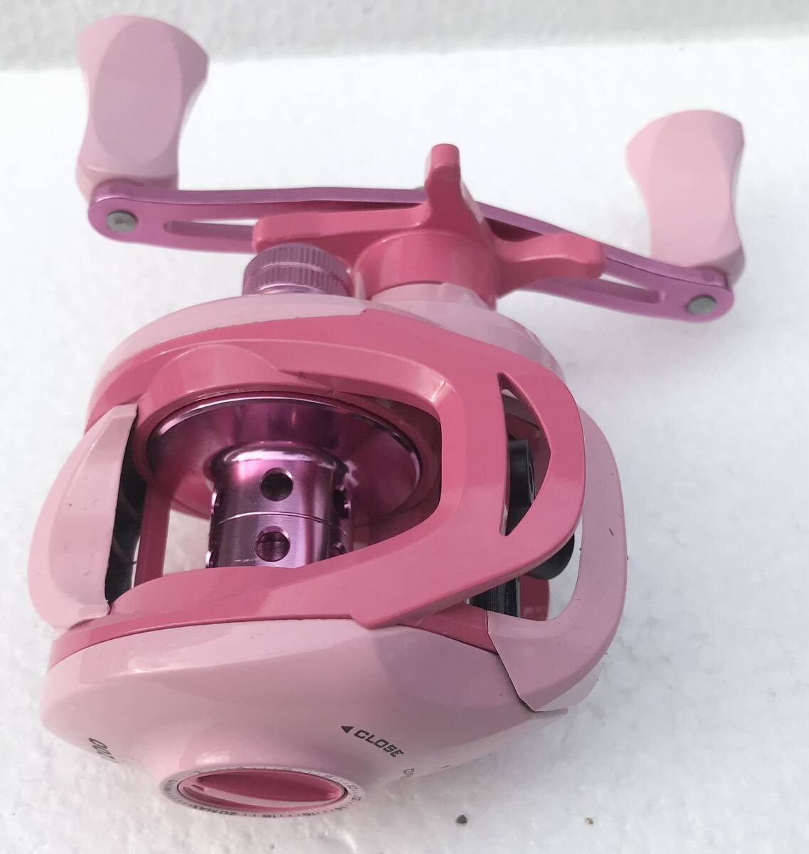 写真のHAUT TONベイトキャスティングリール ドーパミンローズ ピンクDR200左ハンドル(新品未使用)を発送します(送料無料)。