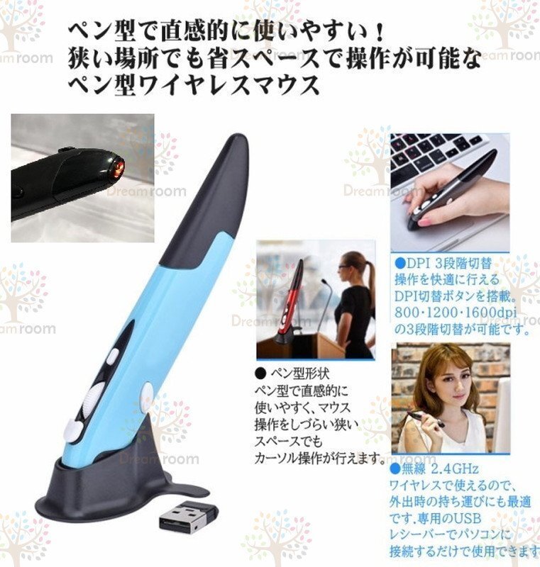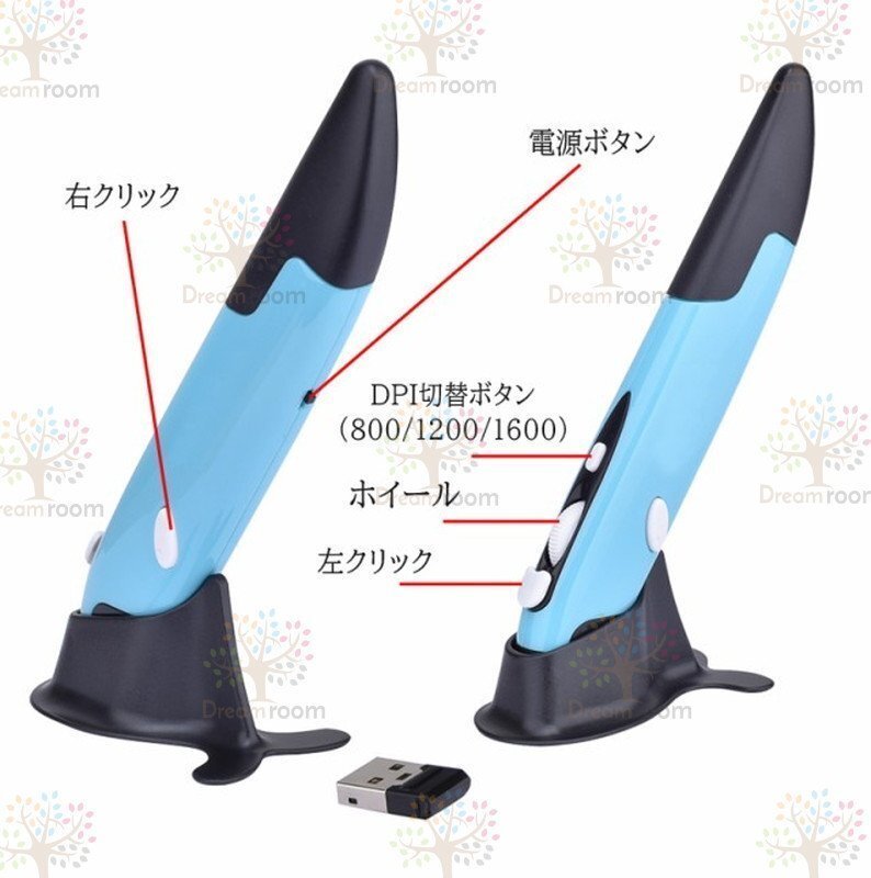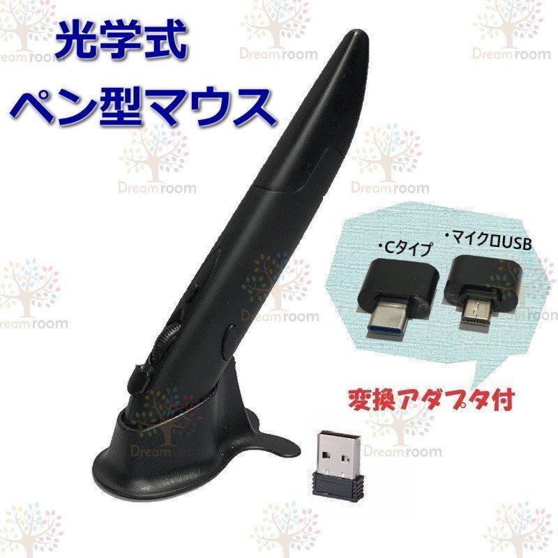光学式 ペン型 マウス ブラック ワイヤレス 無線 2.4GHz パソコン PC スマホ タブレット タイプC マイクロUSB 変換ソケット付