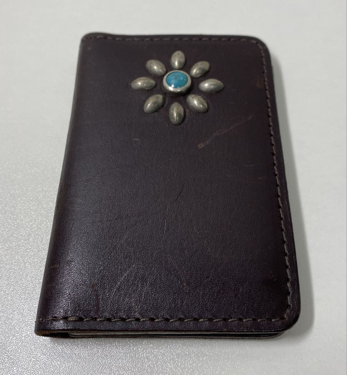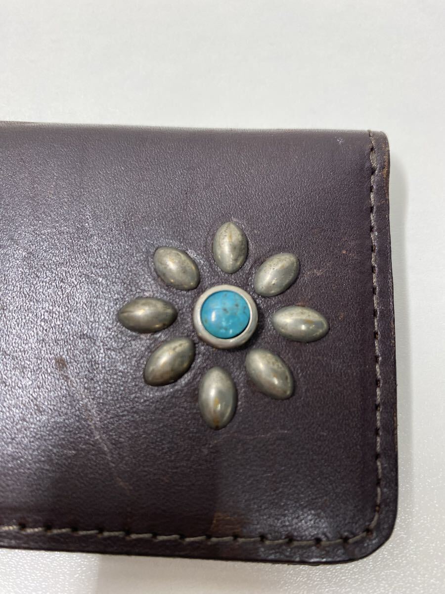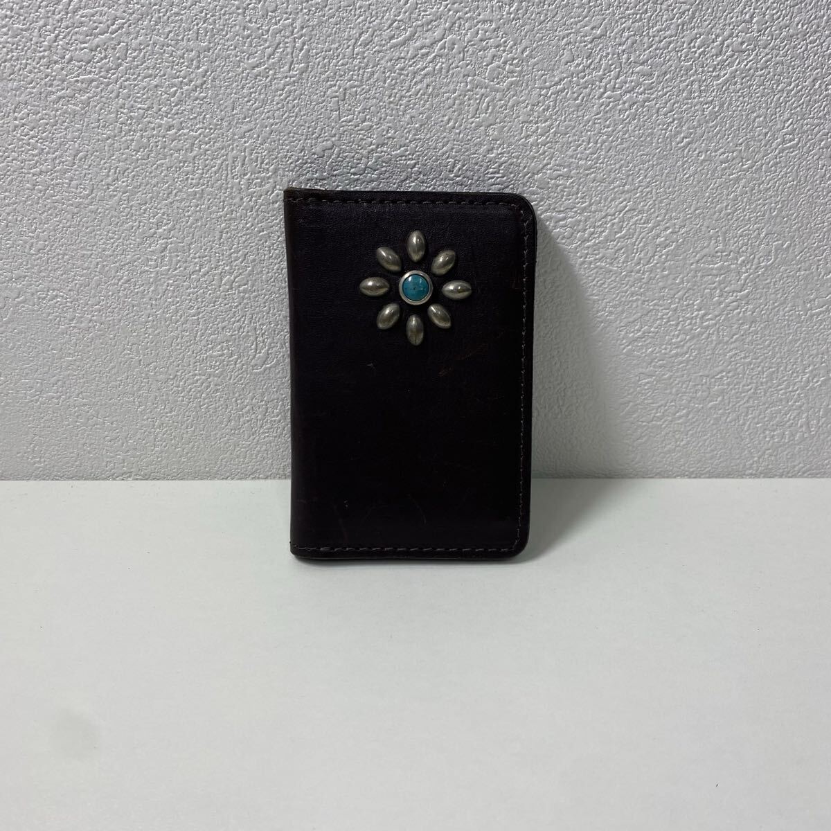 【hollywood trading】ハリウッド・トレーディング カードケース SUNSET ターコイズ フラワースタッズ サンセット レザー ブラウン 34