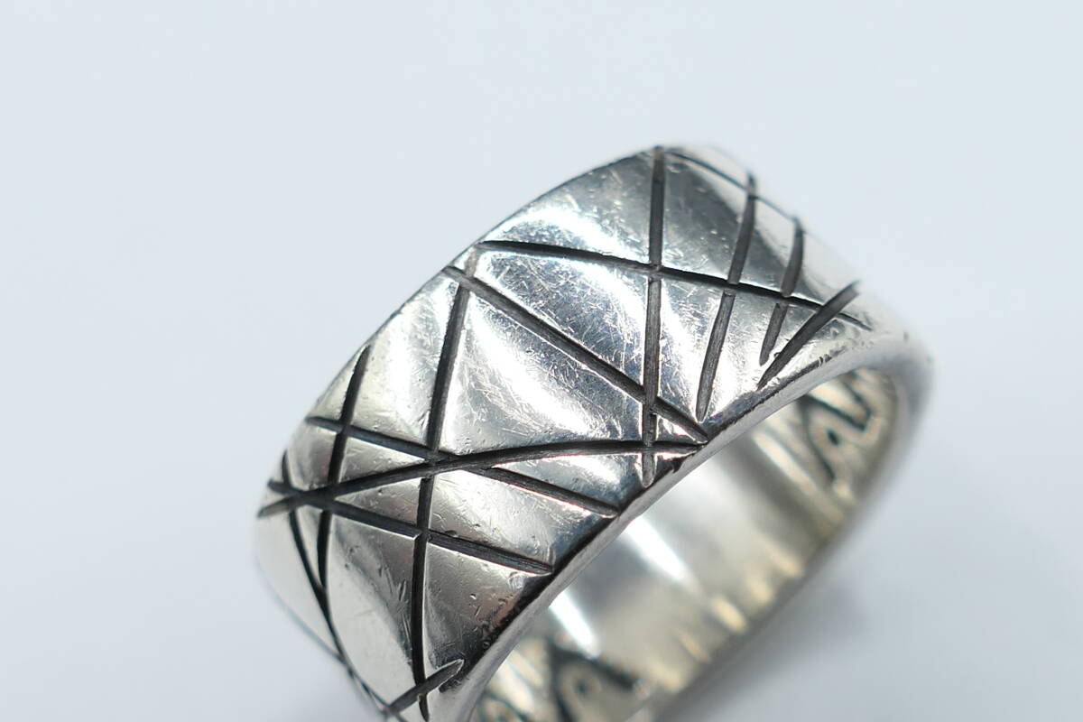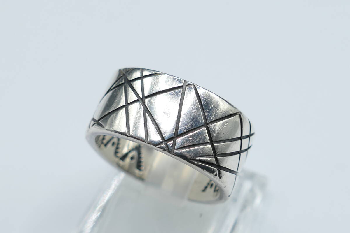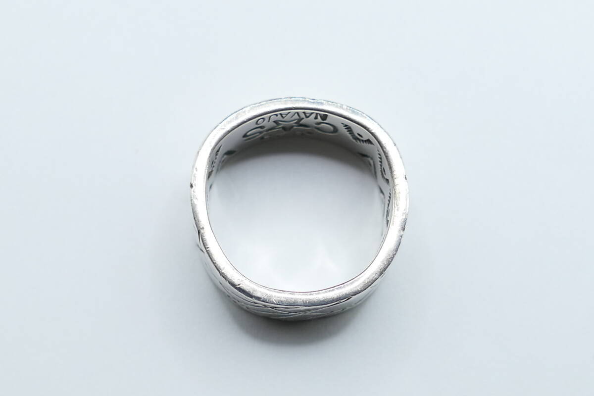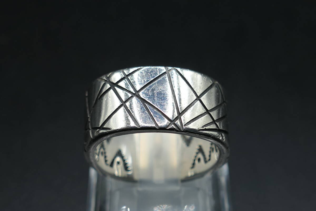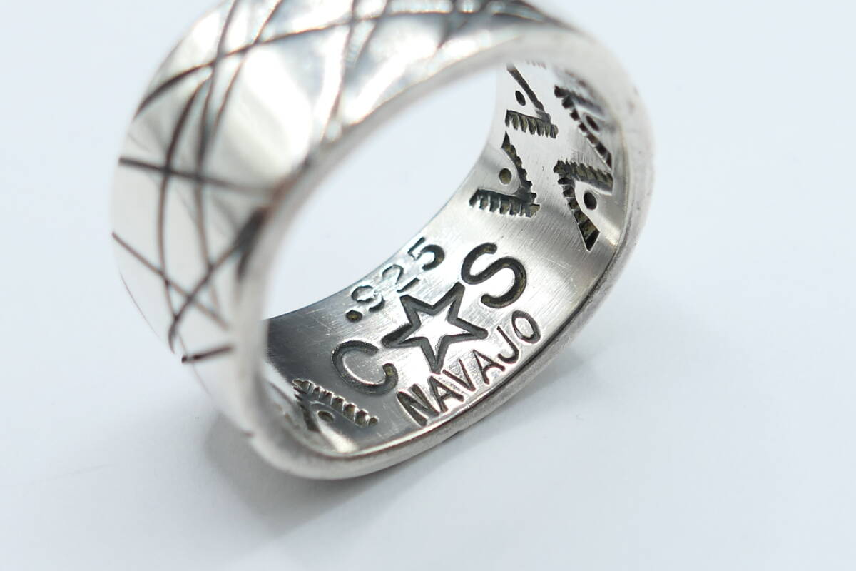 大胆にラインを入れた珍しいデザインで、内側にはナバホの伝統的なデザインが刻印されています。