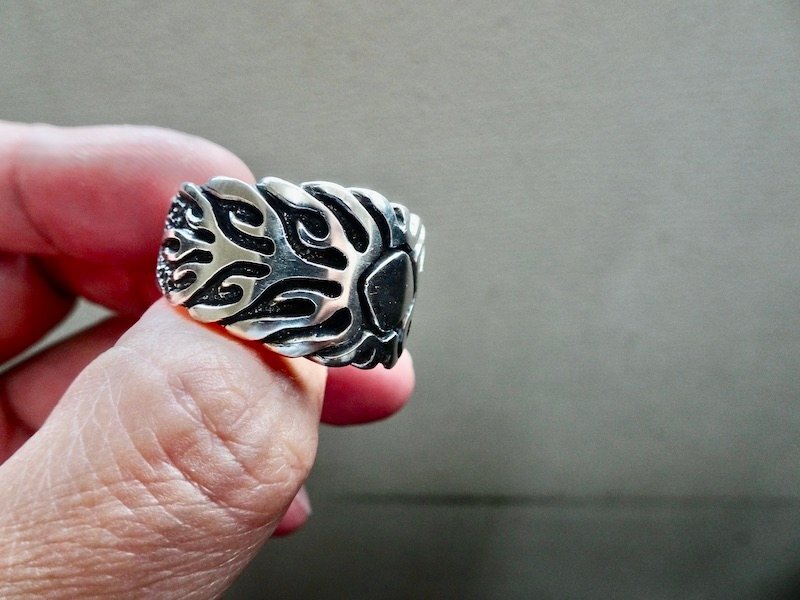 ごらん頂きありがとうございます。 オリジナルブランド 仁尾彫金『ファイヤーパターン、リング、燻あり』を出品致します。オリジナルのアクセサリーを自ら制作しています。今回、最大幅1.7cmのリングにファイヤーパターンのモチーフを表現したリングを制作致しました。そこに今回、燻加工をしました。 最大厚みは5ミリ強と肉厚シルバーを約28gとボリュームもあります。シルバーなので使い込むと独特の味が出てきます!!デザイン制作を私自身で行っている為、今回、新品をご用意致します!! *こちらの作品につきまして13号から30号まで制作可能でございます。m(_ _)m *こちらの作品につきまして制作に2週間程度かかります。m(_ _)m シルバー925 約28g(silver刻印あり) ご質問等ございましたらお気軽にaerothmith@mac.comへご連絡下さい。m(_ _)m インスタにて仁尾彫金で制作状況を掲載していますのでお気軽にご登録をお願い致します。(^-^) 金プラチナにつきましてはフルオーダー制作も承っていますので、ご質問等ございましたらお気軽にaerothmith@mac.comへご連絡下さい。m(_ _)m その他も出品していますのでご覧下さい。m(_ _)m |