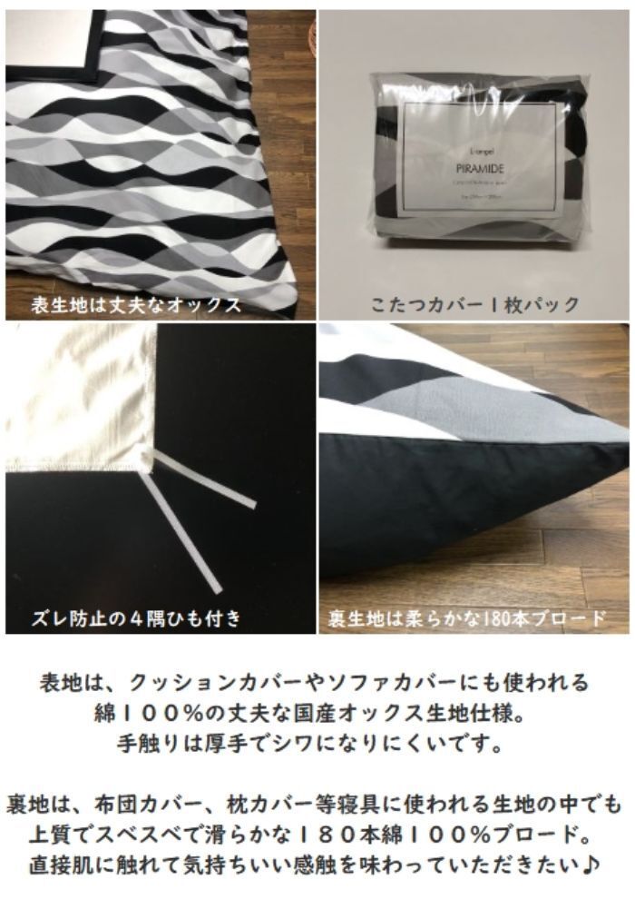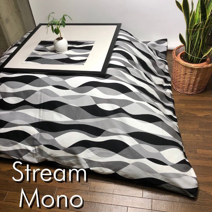 こたつ布団カバー ストリーム モノ 200×200cm 波柄 正方形 綿100%