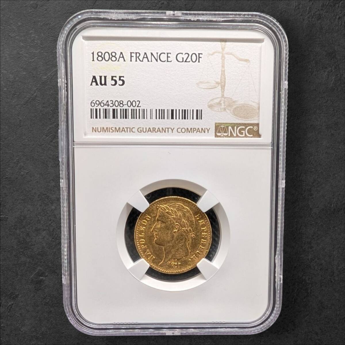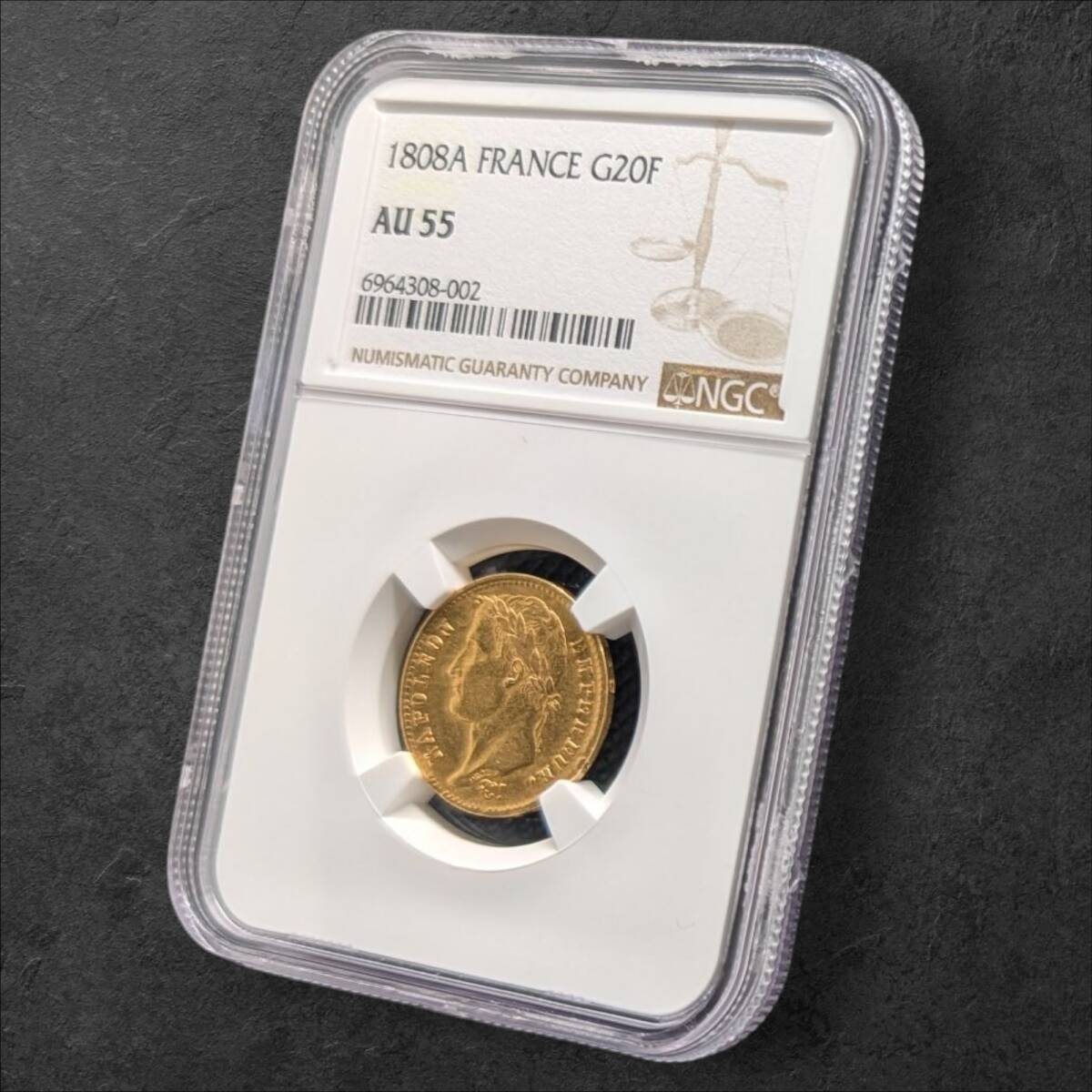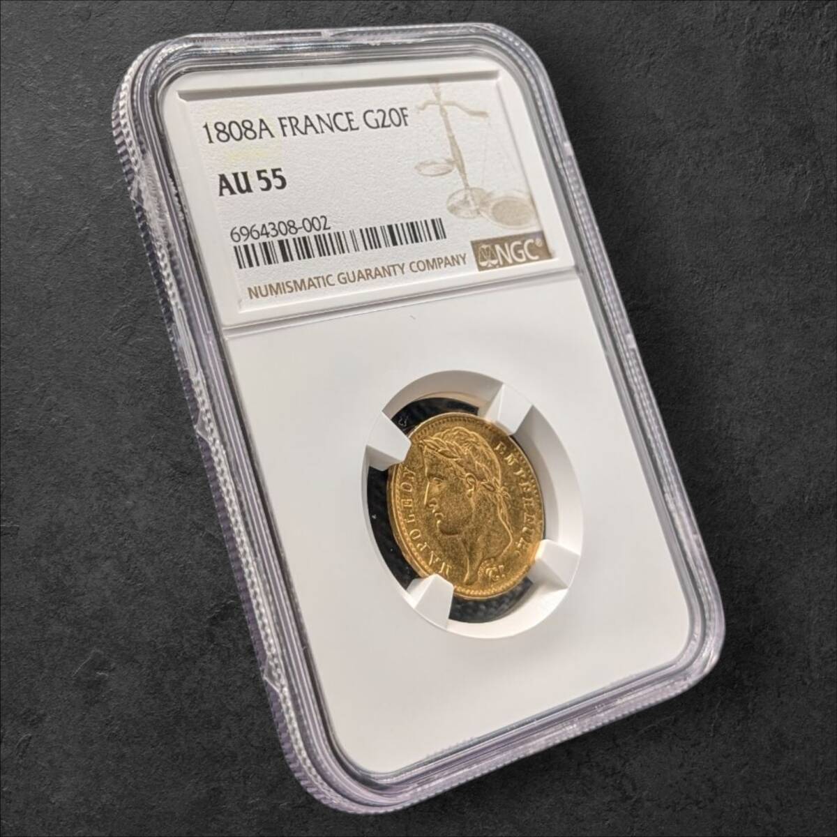★英雄 有能 ナポレオン1世★1808年 フランス NGC AU55 20フラン 金貨 皇帝 アンティークコイン 無冠 資産保全