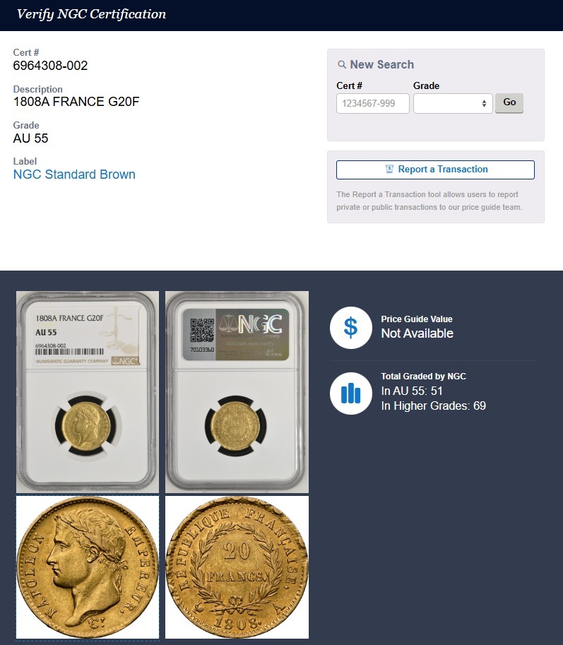 そんな、ナポレオンの金貨です。この金貨を眺めながらナポレオンの時代や執政に思いをはせるのも素敵かと思います。また、この5年でも3倍以上に価値が上がっており、今後も資産的価値を持ち続ける金貨です。