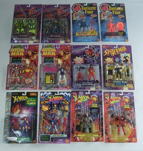 VINTAGE 90s MARVEL マーベル フィギュア・人形 まとめ売り 12体セット未開封品 ビンテージ IRON MAN/SPIDER MAN/X-MEN/FANTASTIC FOUR