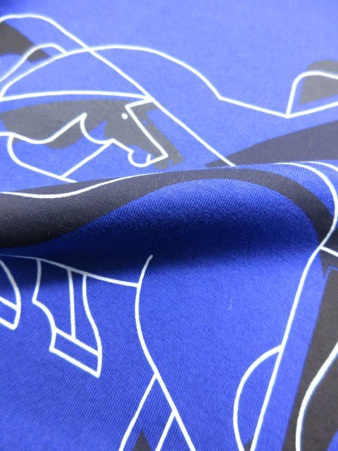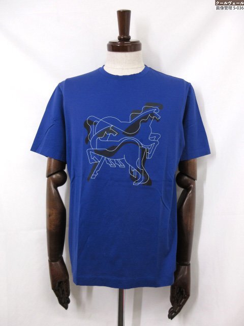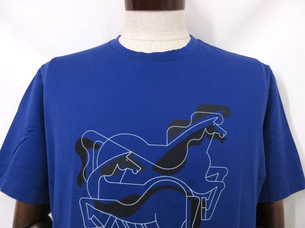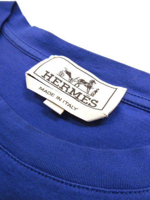 美品【エルメス HERMES】 コットン100% プリント クルーネック半袖Tシャツ (メンズ) sizeM ブルー系 イタリア製 ◇33MT6452◇