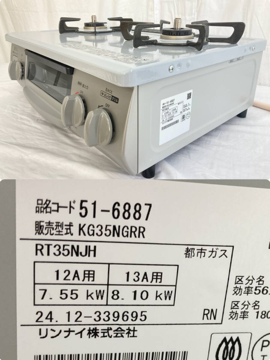 ※土日は不定休の為、ご対応が遅れる可能性がございます。 ※送料連絡は休日明けに順次ご対応させていただきます。 ■品名■ 【JN14】Rinnai ガスコンロ ガステーブル RT35NJH KG35NGRR 都市ガス 2024年製 右強火 ガスホース付き スカイグレー 通電火花OK 現状品 【発送サイズ】 ・佐川急便 宮城県より [160] サイズ ■型番■ RT35NJH KG35NGRR 〈付属品〉 写真にあるもの全てでございます。 ガスホース付き 乾電池は付属しません。 ※付属品はおまけとしてお付けします。不具合等あっても返品交換等出来ません。 ※購入時にあっても、現状無い物もあるかと思います。画像にある物が全てです。 ■詳細■ 譲り受けた中古品です。 落とし切れない汚れやスレございますが比較的綺麗な状態かと思われます。 都市ガス・右強火となります。 連続放電=バーナー部分から着火の火花が連続して出ることのみ、確認しました。 長時間の動作確認・全機能のチェックはしておりません。 現状品とご理解の上でご入札ください。 《製品仕様》 質量(kg):7.5 * 外形寸法(mm):高さ218x幅560x奥行446 * グリル庫内寸法(mm):高さ67x幅233x奥行323 * トッププレート寸法(mm):高さ180x幅560x奥行3923 * グリル焼網寸法(mm):幅208x奥行302 * 点火方式:回転式、連続スパーク点火 * 生産ガス種:LPG * 設置タイプ:据え置き * 強バーナー位置:右 * トッププレート材質:クリスタルコート * ゴトク種類:汁受け皿なし(汁受けレス) * ガス種類:プロパンガス * コンロ口数:2 口 * グリル種類:水無し片面焼き ※製品サイトより抜粋しました。 出品にあたり簡易清掃を施しましたが、取りきれない汚れやキズ等がございます。 全ては写し切れておりませんが、画像にてご判断の上ご入札願います。 中古品ですので、神経質な方、新品同様をお探しの方の入札はお断り致します。 基本的にノークレーム、ノーリターン、ノーキャンセルでお願い致します。 ※万が一不具合等がございましたら、詳細を確認したいので一度ご相談ください。 | ||||