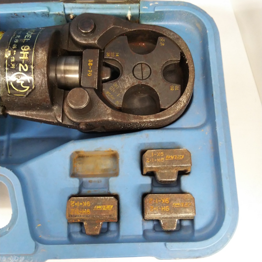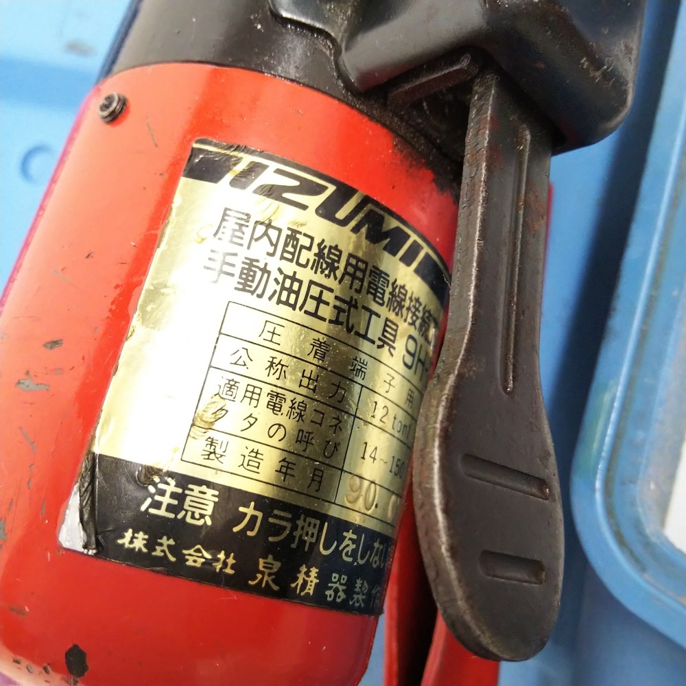 B25-2458【ジャンク】IZUMI 泉精器製作所 9H-2 手動油圧式圧着工具 ケース入り 現状品 ※油漏れ/ケースにイニシャル ※簡易包装100サイズ