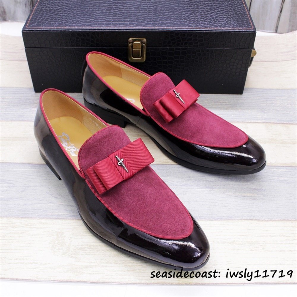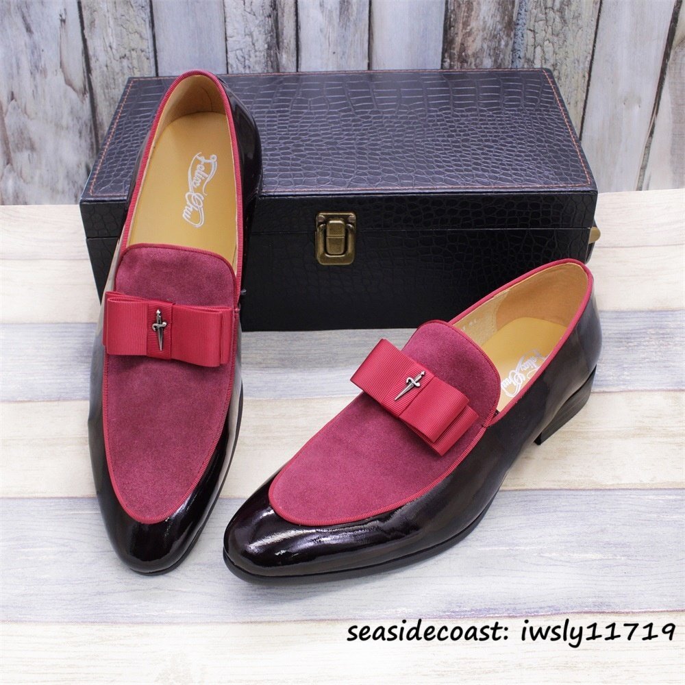 最高級★ビジネスシューズ メンズ ローファー スリッポン本革 レザーシューズ 職人手作り ドレスシューズ紳士靴 牛革 革靴 レッド 25.0cm