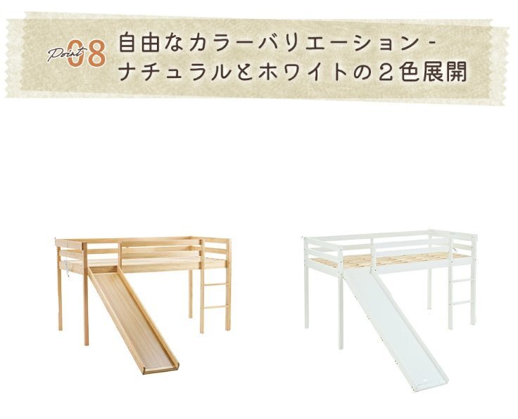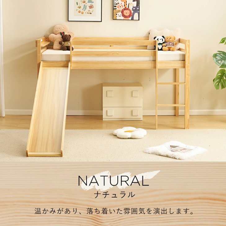 • 【ナチュラルな木材】天然パイン材を使用しています。滑り台とベッドボード以外、天然の松の木(クスノキ)が使われている、長期間の使用に耐える。クスノキは虫の目、木目や節が少ないため、他の木材に比べて安定しています。湿気を吸収・放出する特性があって、通気性に優れています。