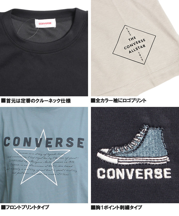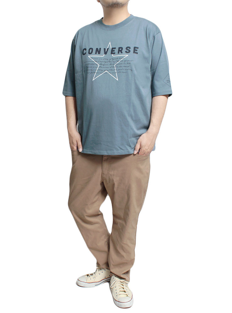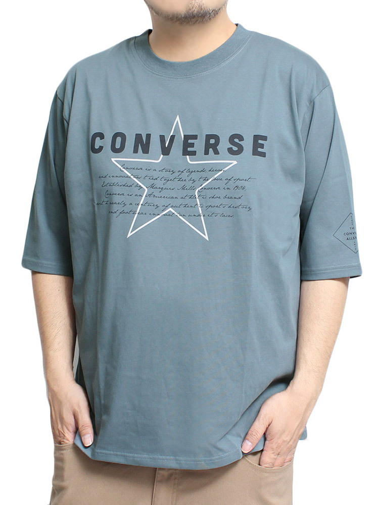 | 商品名 | 【新品】 5L サックス コンバース(CONVERSE) 5分袖 Tシャツ メンズ 大きいサイズ CVCドライ 吸水速乾 刺繍 ロゴ プリント クルーネック カットソー |