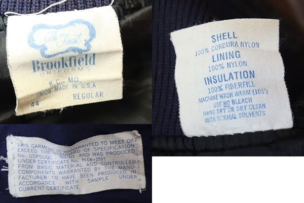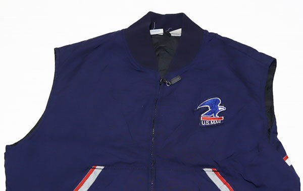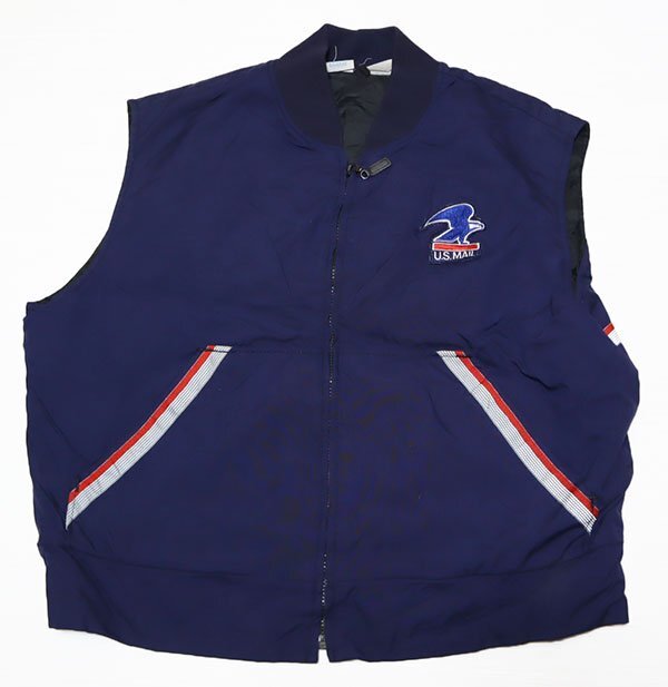 80-90年代頃のUSMAILの表地は綿ポリ混で裏地内装はナイロンの中綿入りで紺系xシルバー系(リフェクター)赤系ラインです。