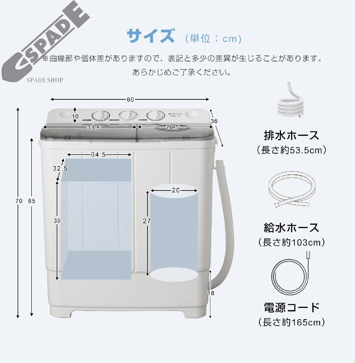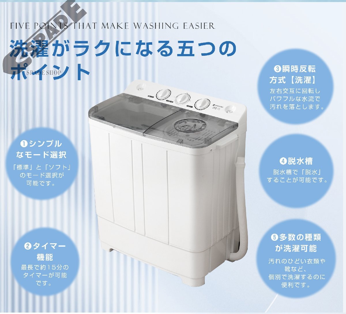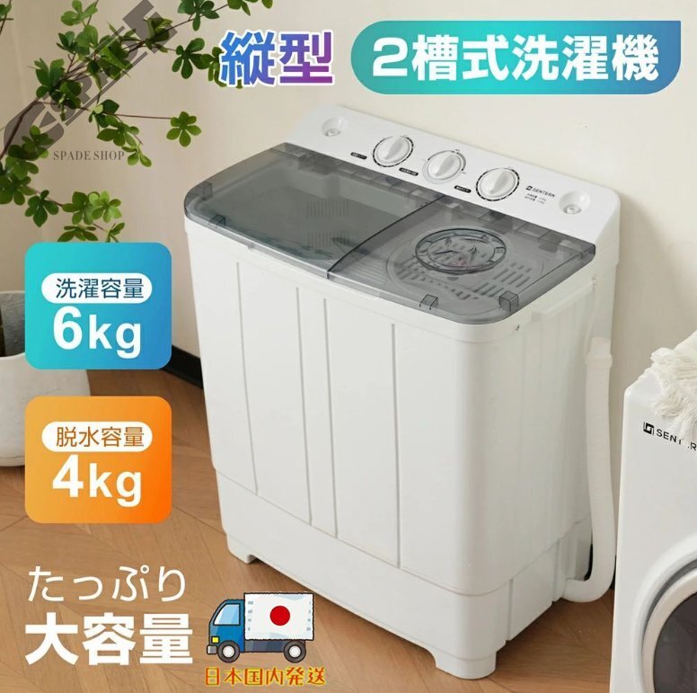 【国内発送】洗濯機 洗濯容量6kg 脱水容量4kg プラスチック槽 キレイ タイマー コンパクト 一人暮らし 節電 二槽式洗濯機まとめ洗い 脱水器