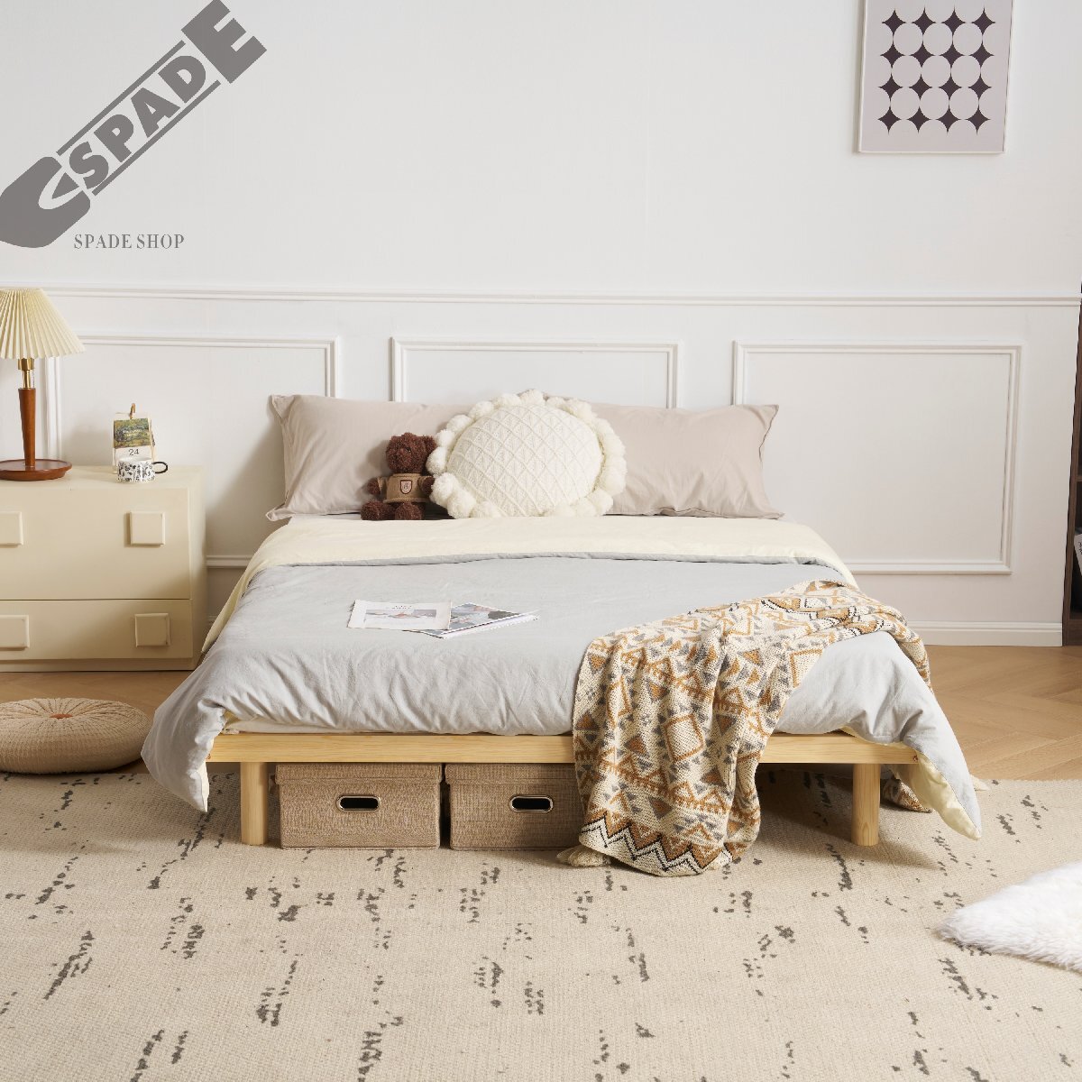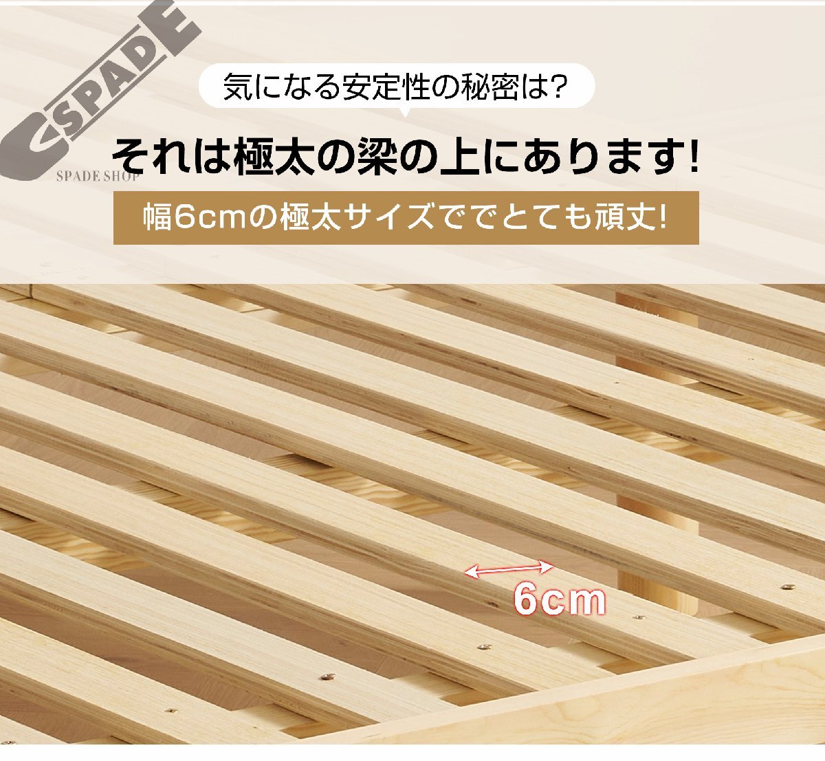 • 【400kg耐荷重!くつろぎも収納も安心の頑丈設計】 良質なパイン材を厳選し、ベッドフレームが作られています。高密度で非常に丈夫な木材を使用しているため、400kgの荷重にも耐える頑丈な構造を実現。安定性と耐久性を兼ね備え、快適な使用感を提供します。