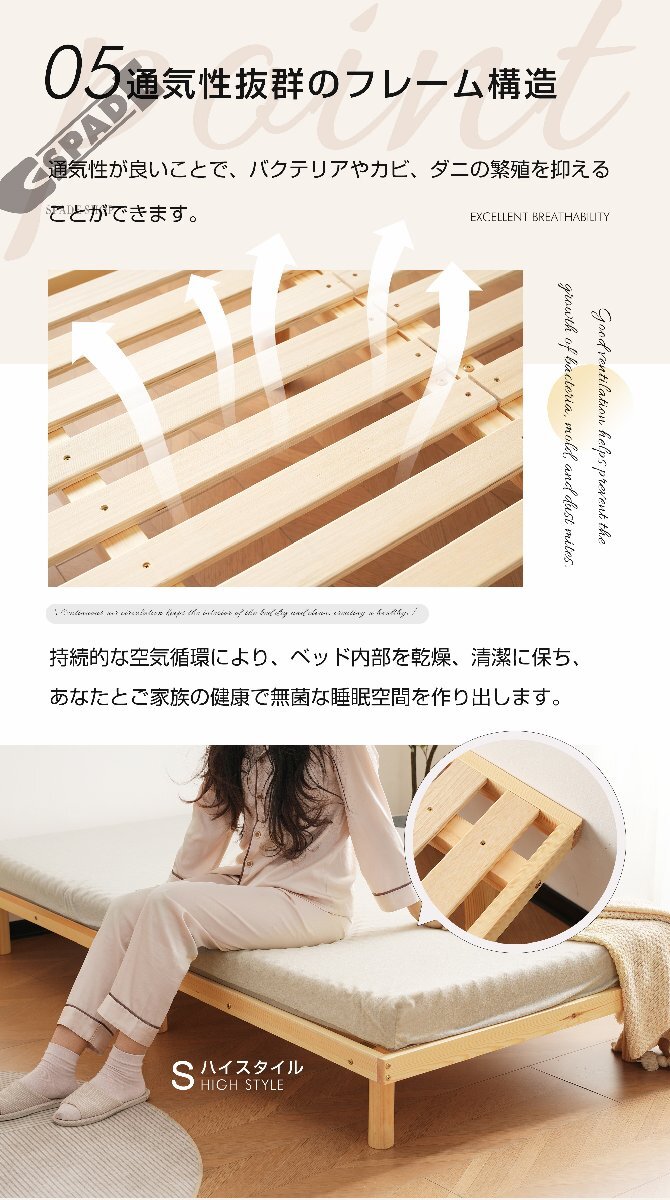 【国内発送】 D すのこベッド 3段高さ調節  シングル  ベッド シングル  すのこ 低ホル ベッド 天然木 パイン材  湿気/カビ対策 木製