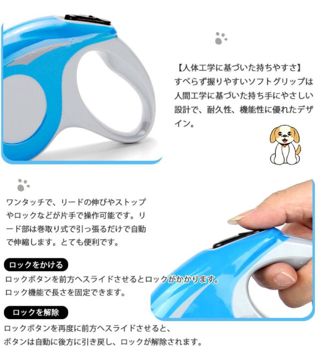 6.ワンタッチで、リードの伸びやストップやロックなどが片手で操作可能です。リード部は巻取り式で引っ張るだけで自動で伸縮します。とても便利です。