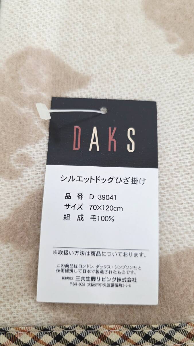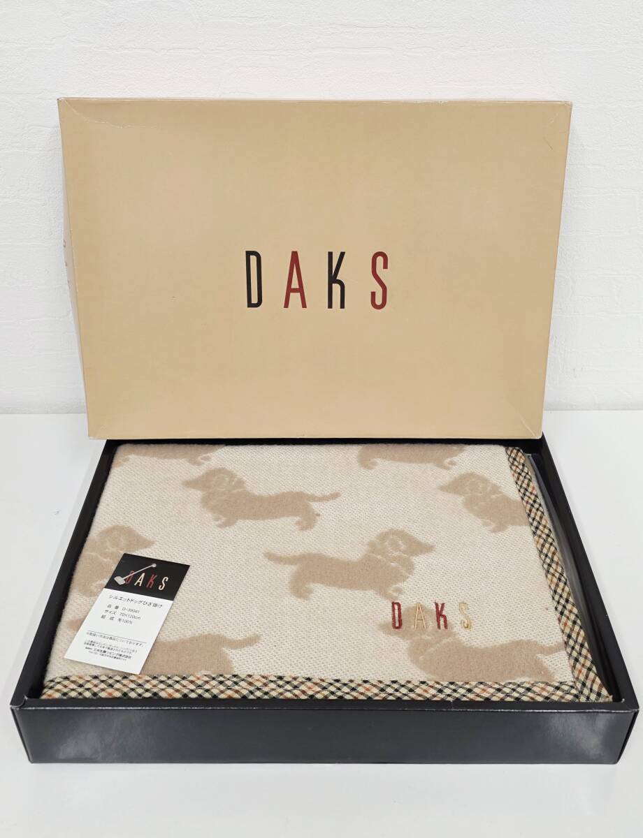 E-1083 【同梱不可】980円~ 未使用品 DAKS/ダックス シルエットドッグひざ掛け ベージュ D-39041 ひざ掛け 70×120