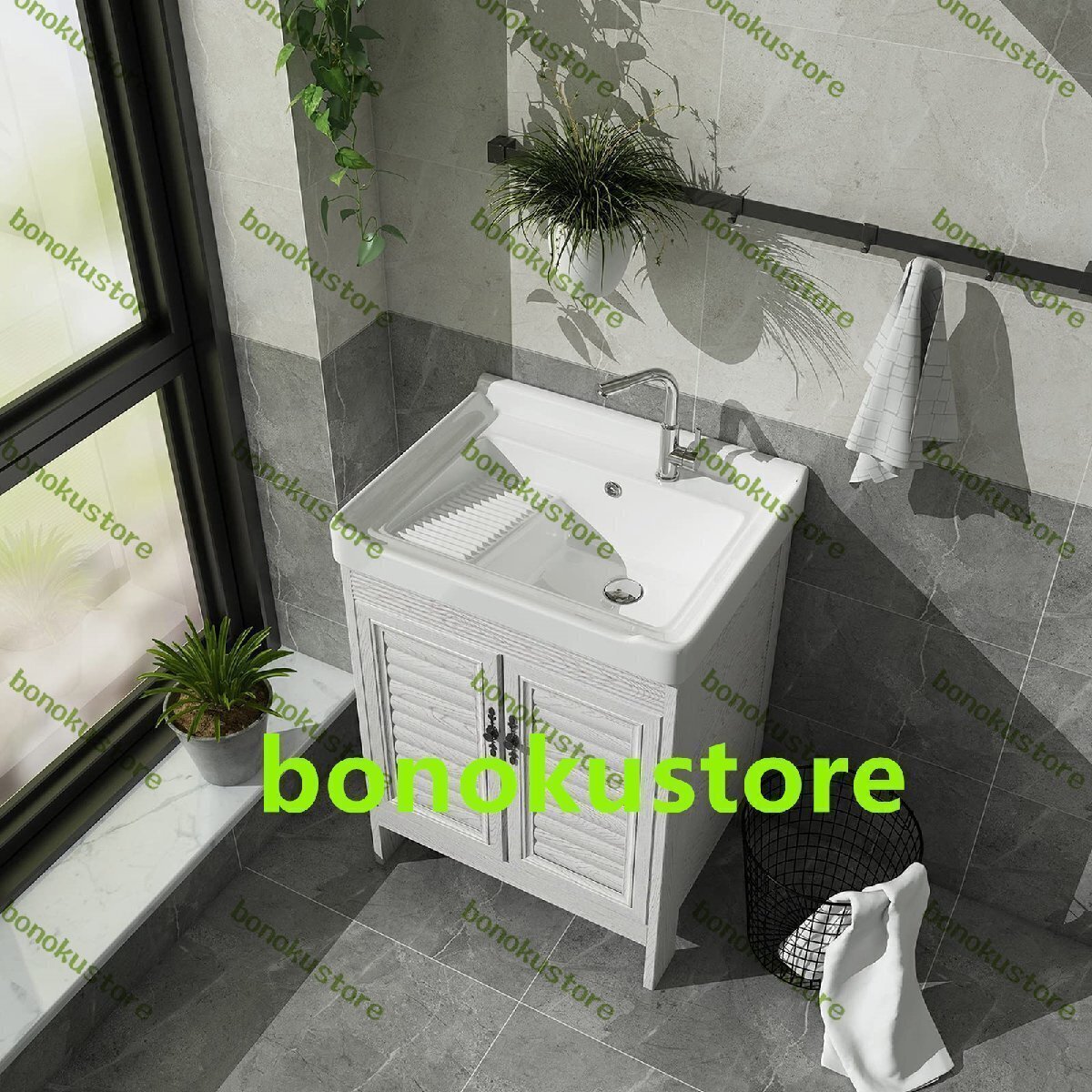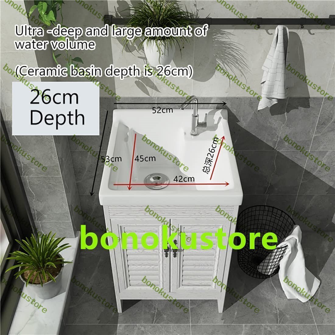 洗面台 洗面ボウル 手洗い器 陶器 ロッカー付 洗面化粧台 洗面所 収納 キャビネット、水はね防止、温水・冷水栓付、排水金具(洗面台・カウンター下収納セット) (Size : 53*54*83cm/20.8*21.2*32.6in)