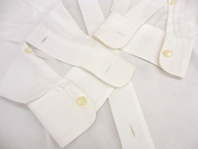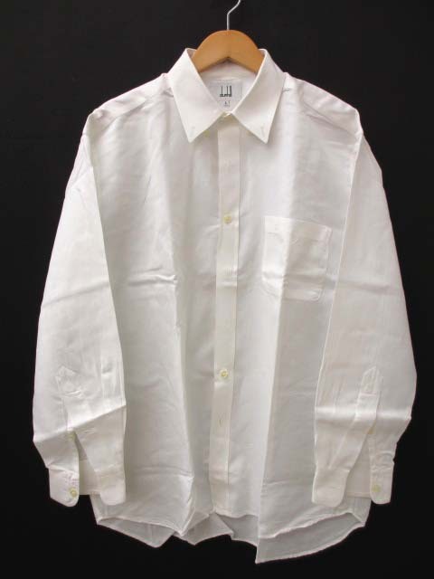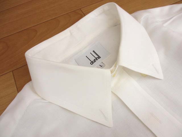 【Y】同梱OK ダンヒル dunhill 綿麻 長袖シャツ ワイシャツ ドレスシャツ ストライプ L d刺繍 ホワイト/A5