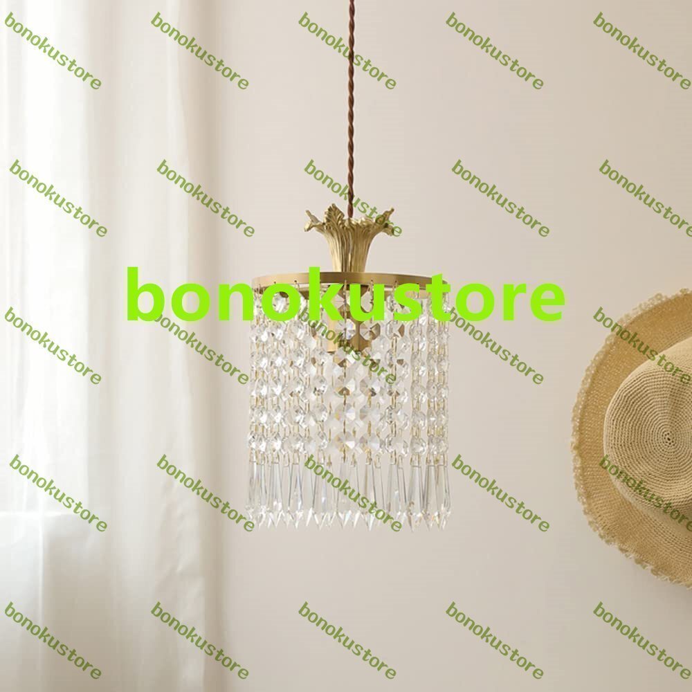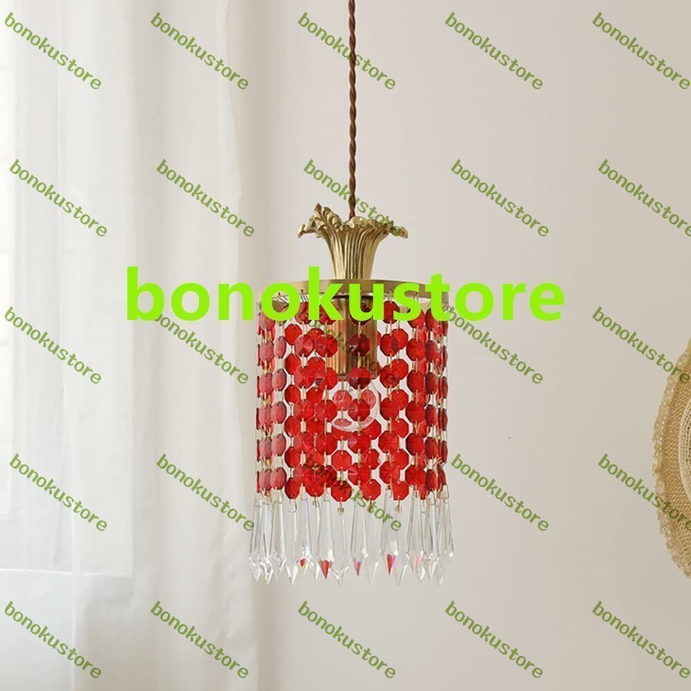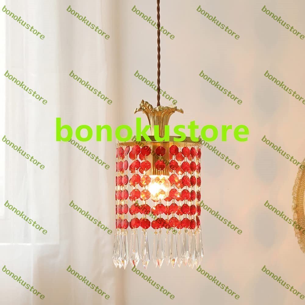 クラシカルな牧歌的なクリスタルペンダントライト E14 1ライト 真鍮吊り下げシャンデリア モダン ベッドサイド 調節可能な照明器具 ミニマリスト 屋内 ホームデコレーション 天井吊り下げランプ H8.67インチ レッド
