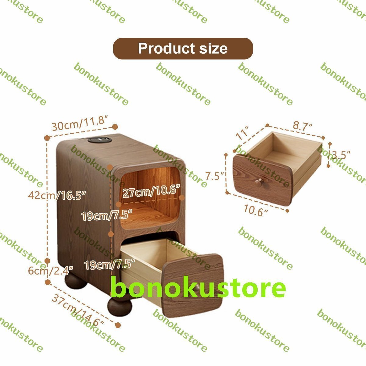 スマートナイトスタンド Bedside Table ベッドサイド 収納 ベッドサイドテーブル スリム 引き出し付き無垢材収納キャビネット ナイトテーブル リビングルーム 寝室 書斎用のモダンでスリムなエンドサイドテーブル 収納用キャビネット(Yellow 30cm/11.8in)