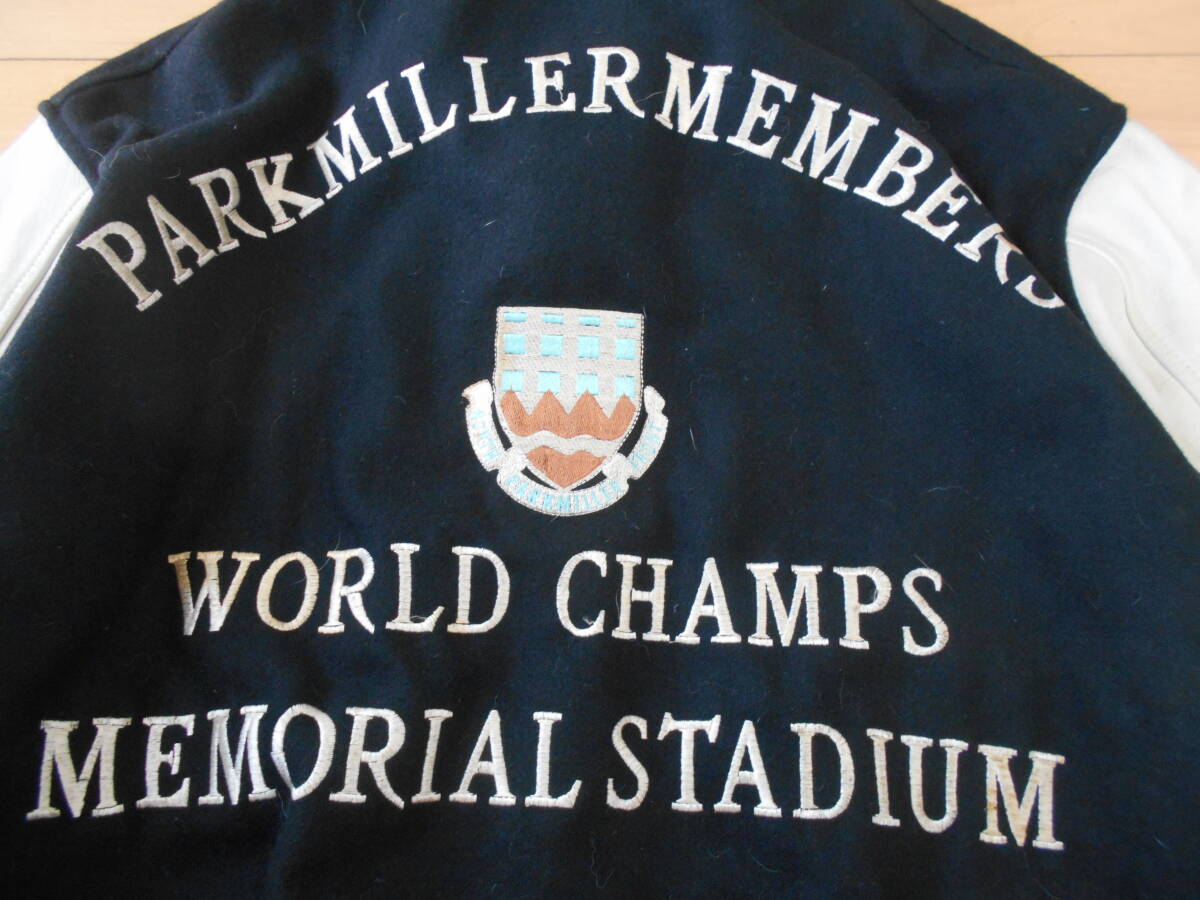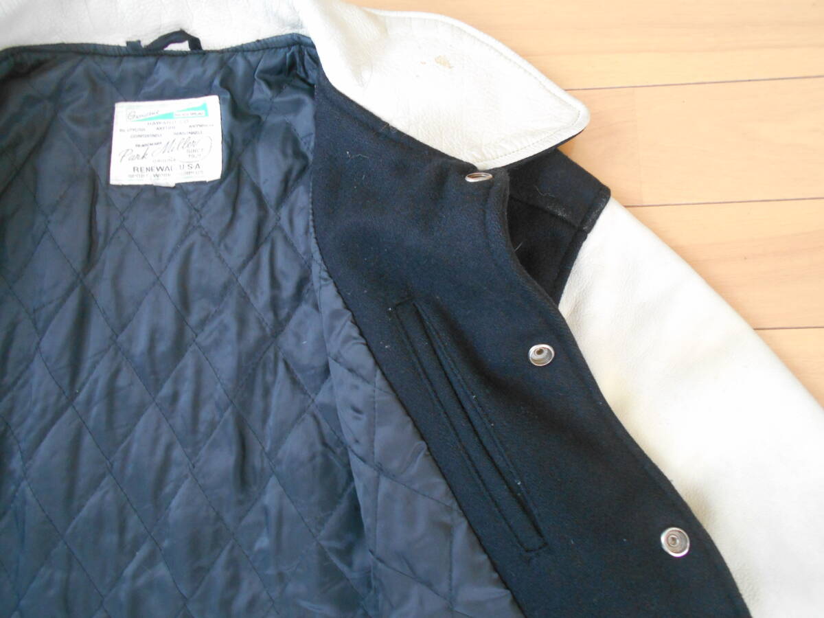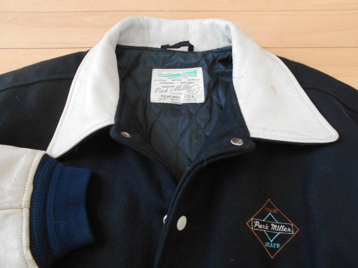 【特別価格】Park Miller byHAWARD 襟&袖革 左胸&背面刺繍スタジアムジャンパー ★黒&オフ白sizeM★