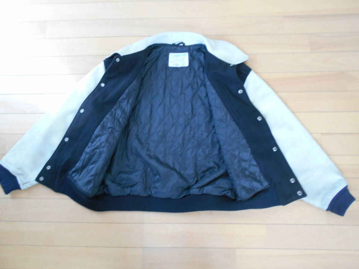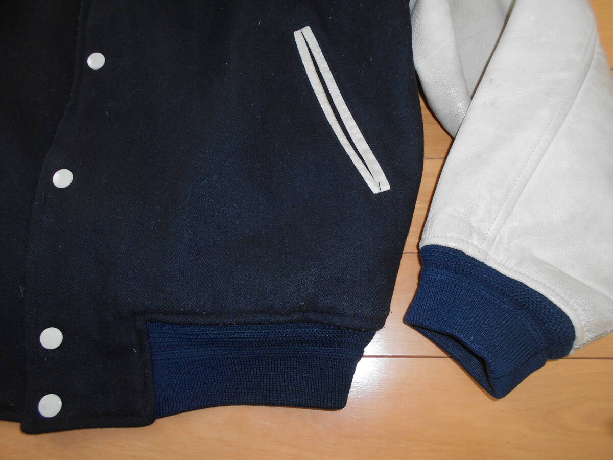 型押しされた袖牛革セットインスリーブのスタジアムジャンパーになります。