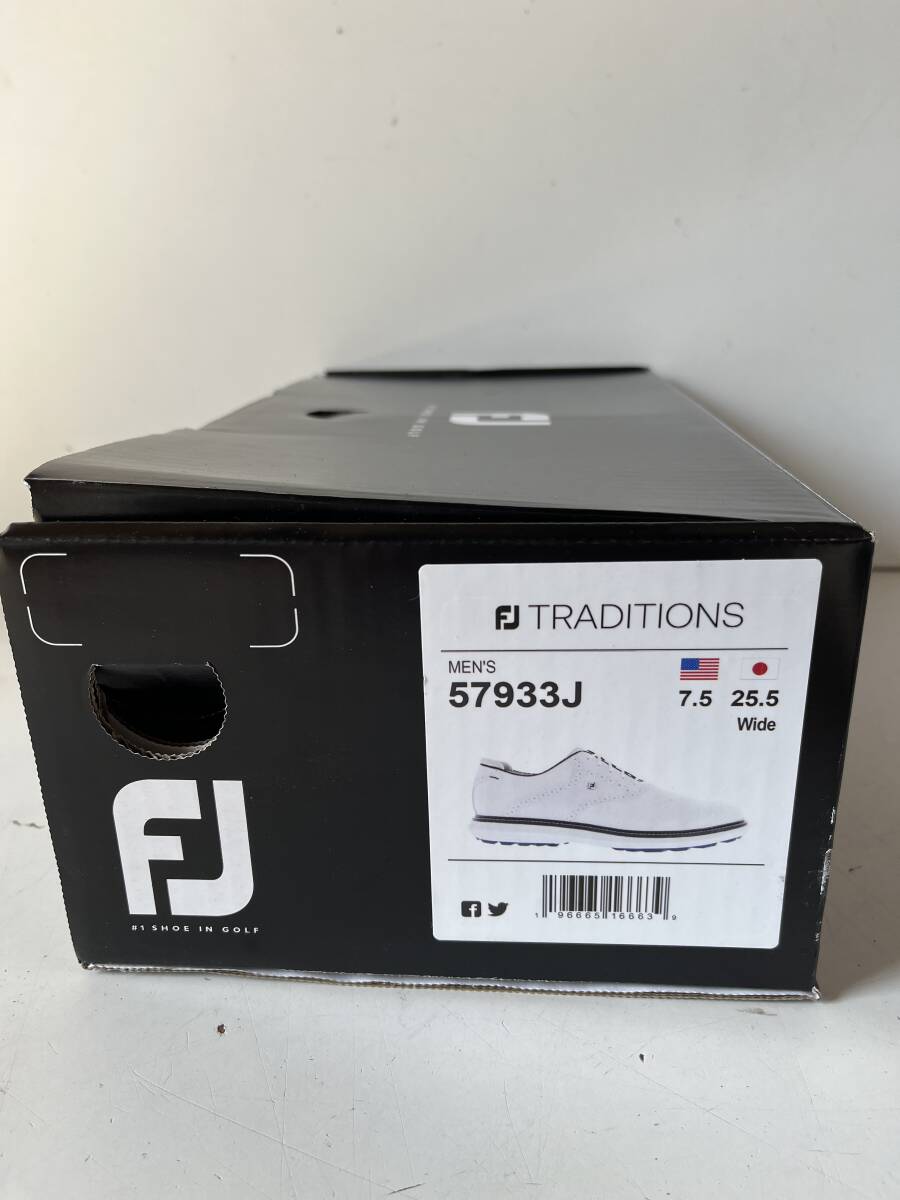 FOOT JOY フットジョイ 57933J TRADITIONS 2023年モデル スパクレス ゴルフシューズ ホワイト系 25.5cm メンズ スポーツ 写真にあるのが商品すべてとなります。 *その他の付属品はございません。 ◆商品状態◆ こちらの商品は代理出品となります。 中古品ですので、傷、汚れがございます。 ご了承の上入札ください。 商品は1点物につき返品、交換できませんので、ご理解の上入札ください。 以上ノークレームでお願いします。 *記載内容と異なる場合はご連絡ください。 | ||||