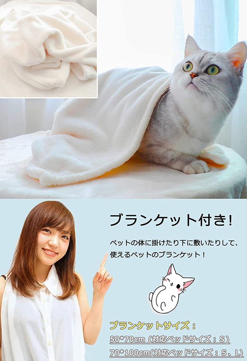 【ブランケット付き】:弊社のペットベッドはベージュブランケット付き、冬はもこもこベッドと一緒に使うことで、冷気の侵入を防ぎ、保温性を高めます。毛布生地のグラウンド部分に、静電気抑制効果のある「カーポン糸」を使用致しました。冬の嫌なパチパチを抑えてさらに快適性を高めました。ご注意: 静電気防止加工は完全に静電気を除去できるわけではありません。