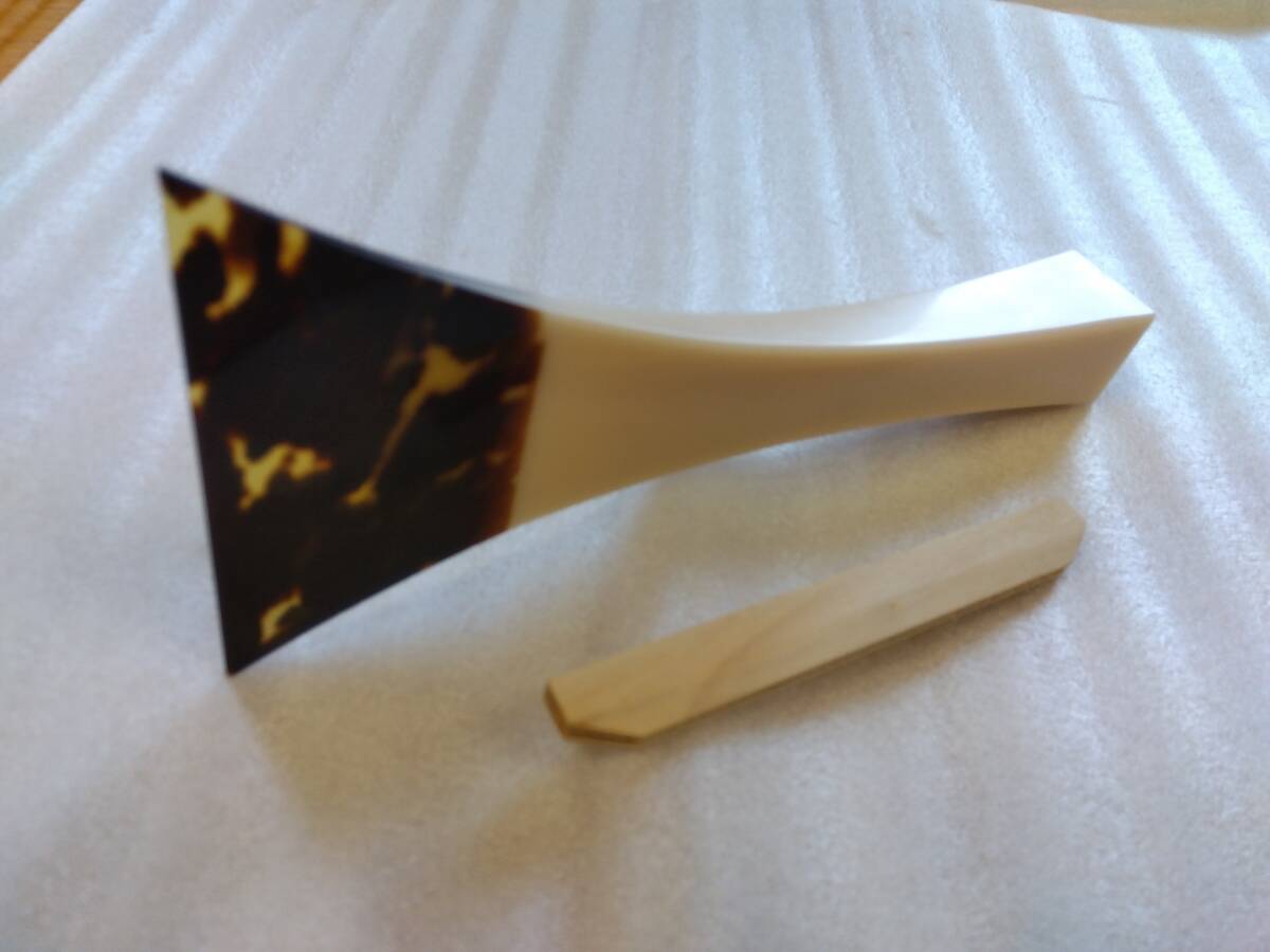 三味線用のべっ甲バチです。バチ先保護用の木製バチさやを付属します。