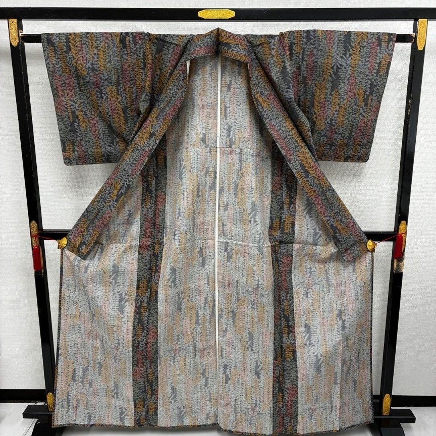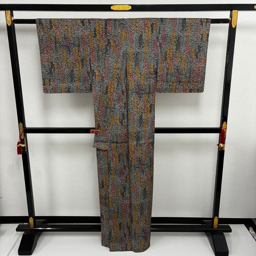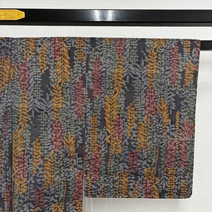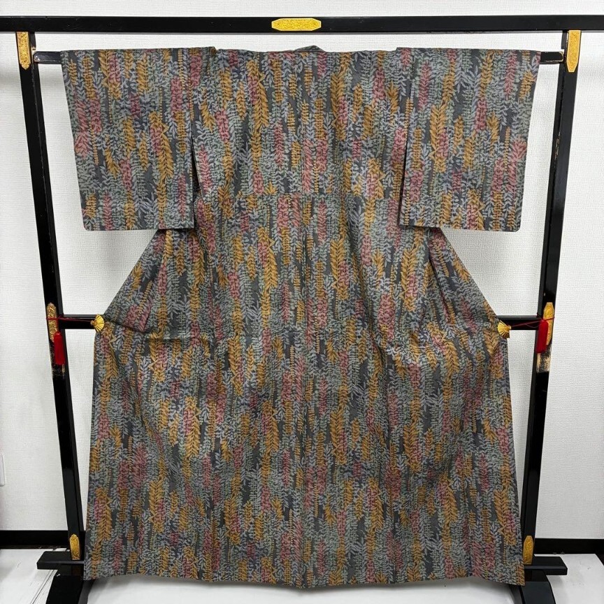 【楓】単衣 大島紬 染め大島 葉模様 正絹 着物 KU-9436