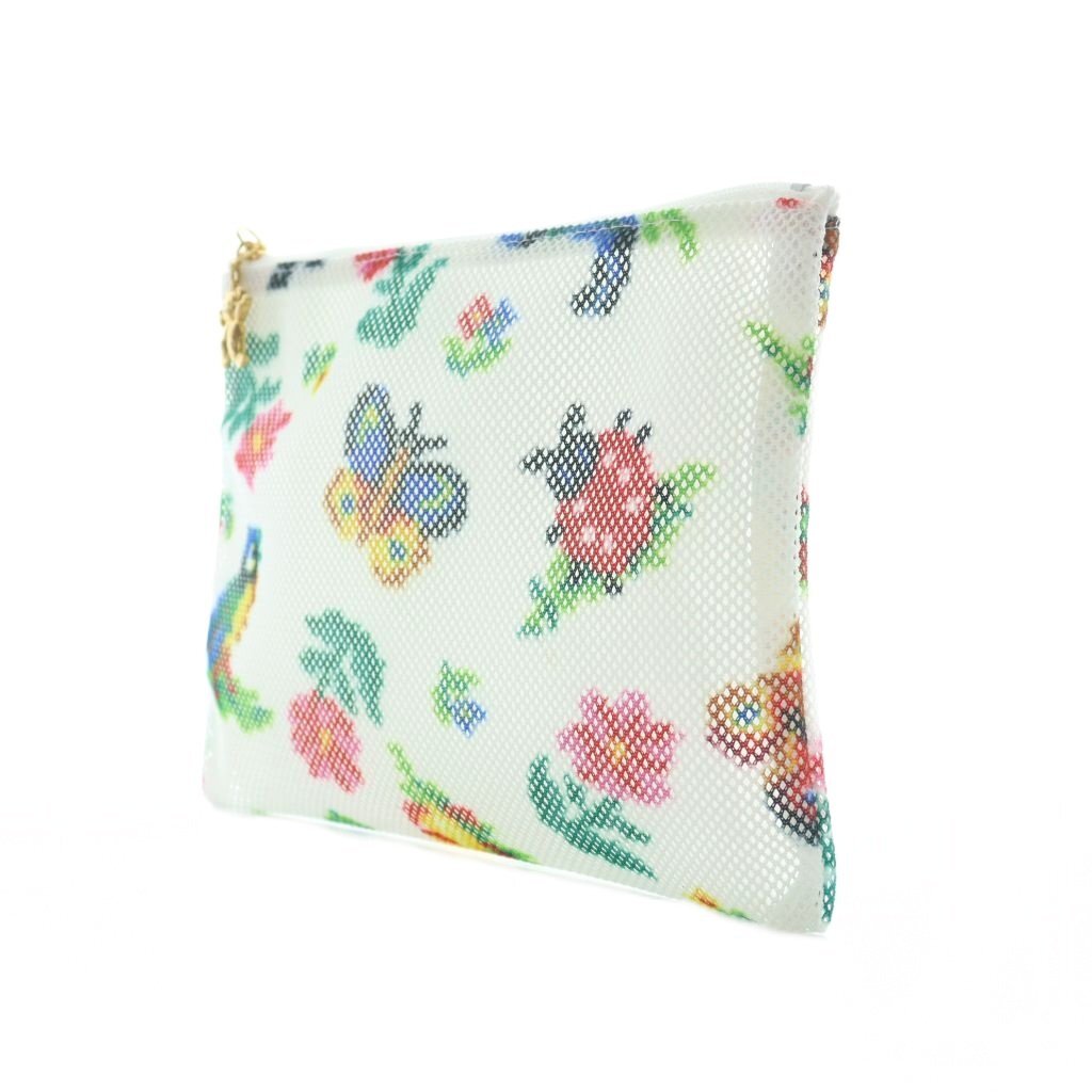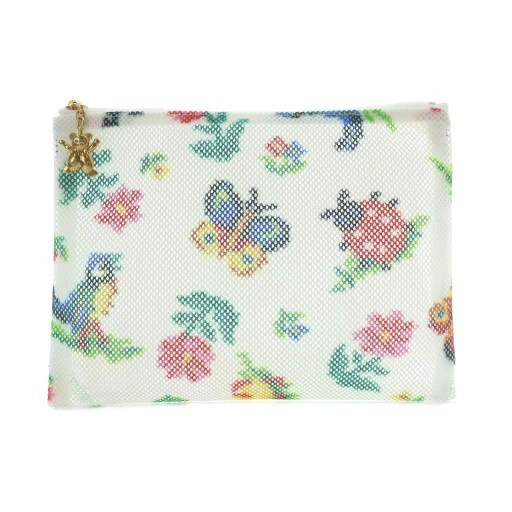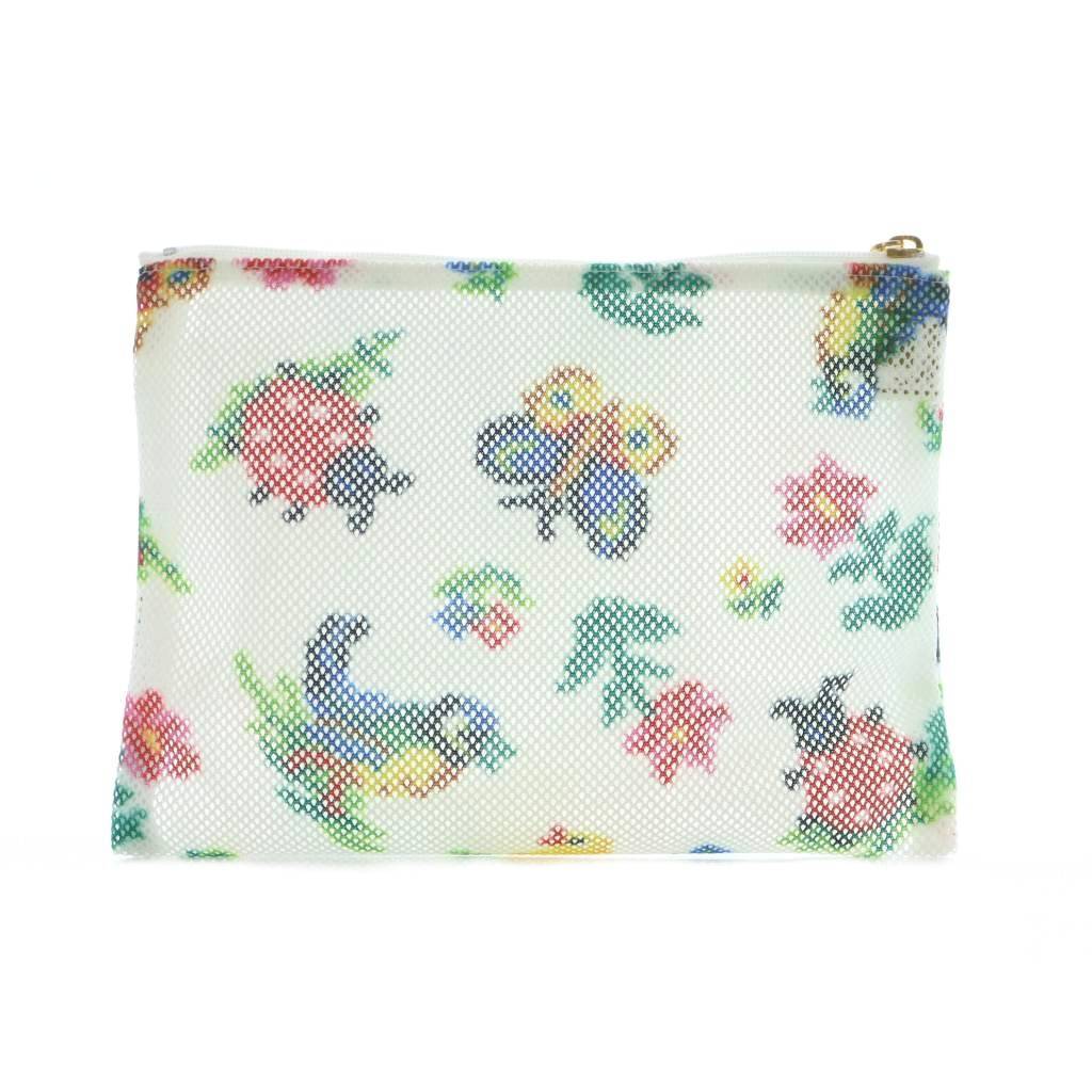 フェイラー FEILER ハイジ メッシュポーチ 白 ホワイト 総柄 蝶 てんとう虫 鳥 花柄 HEMP-241334 /RI■OS レディース