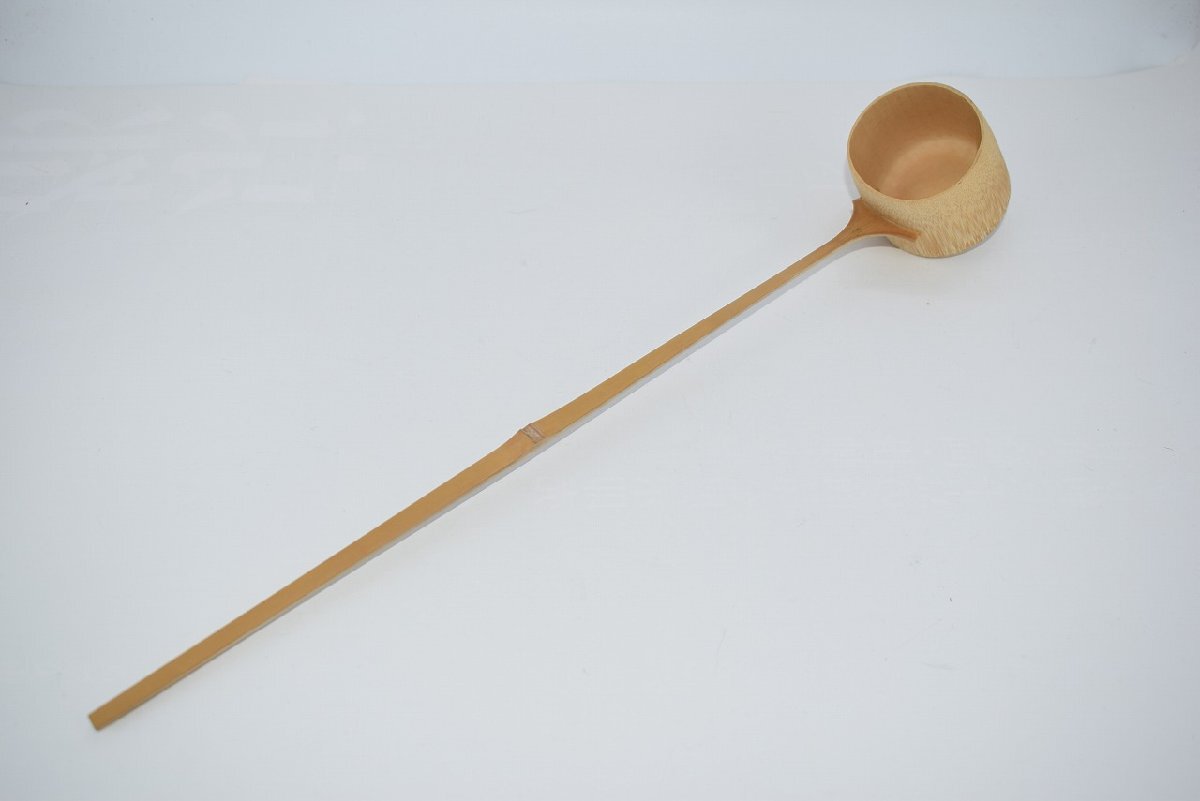 茶道具 柄杓 風炉用 (B-9) 茶道 注)水漏れは確認していません。柄杓扱いのお稽古用としてお使いください。 30-9001-b09 合の径5.7cm:高さ4.8cm 長さ41cm 汚れ、シミ、変色はありますが、柄杓扱いのお稽古用としてお使いになるには差し支えありません。